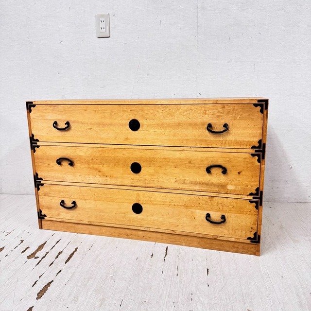 ★★★商品詳細★★★ 〇3段たんす 桐たんす ローチェスト 昭和レトロ 幅95㎝ (商品番号:24550) 型番: 年式: カラー:ナチュラル 完成サイズ(mm):幅950 奥行440 高さ570 ※キズ・凹み:フチ、角、全体的に細かいスレ、キズあり 汚れ・シミ:全体的にシミ、細かい汚れあり その他: 付属品等は写真に写っている物で全てです 新品と記載のない物はリユース品ですので、細かい所が気になる方は購入をお控えください 何かあれば購入前にご確認お願いいたします Amazon中古相場・・・売り切れ 管理用サ220 ★★★★★★★★★