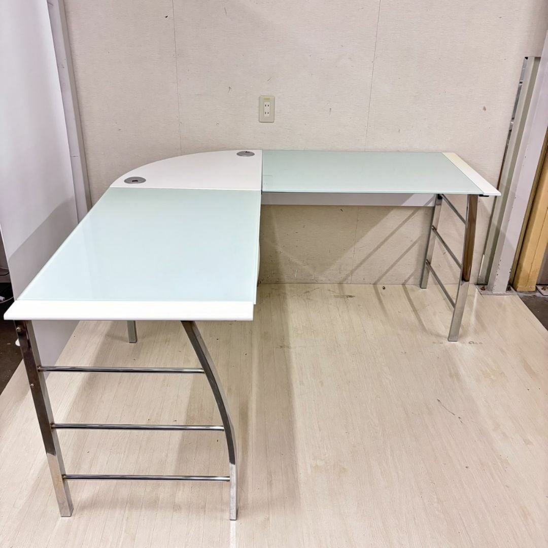 22760 L字型デスク ガラス天板PCデスク オフィスデスク 不二貿易