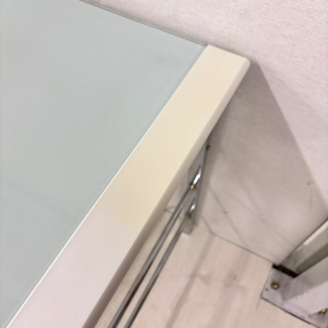 ※ステンレス脚スレ傷あり シルバー部分細かい汚れあり シミ汚れあり スレ傷あり ガラス天板細かい傷あり 淵、角スレ傷、スレ汚れあり 木製天板日焼けあり