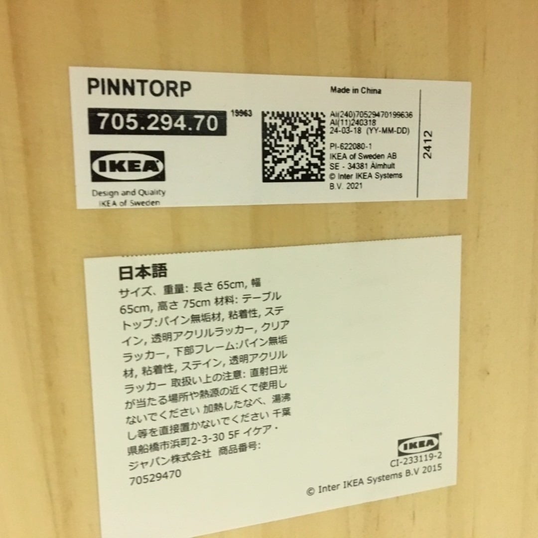 25078 正方形ダイニングテーブル 幅65cm IKEA PINNTORP