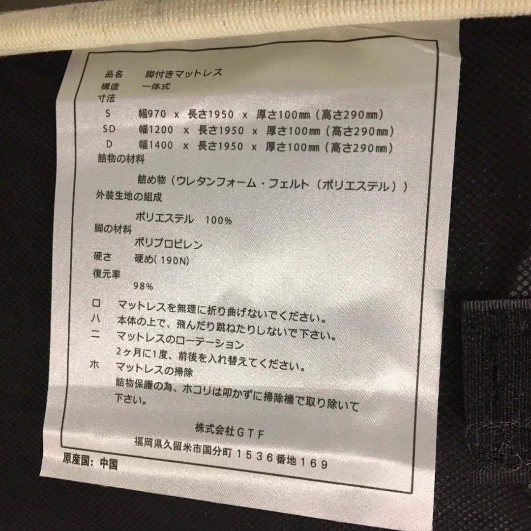 25083 シンプルシングルベッド・マットレスセット 脚付きマットレス GTF