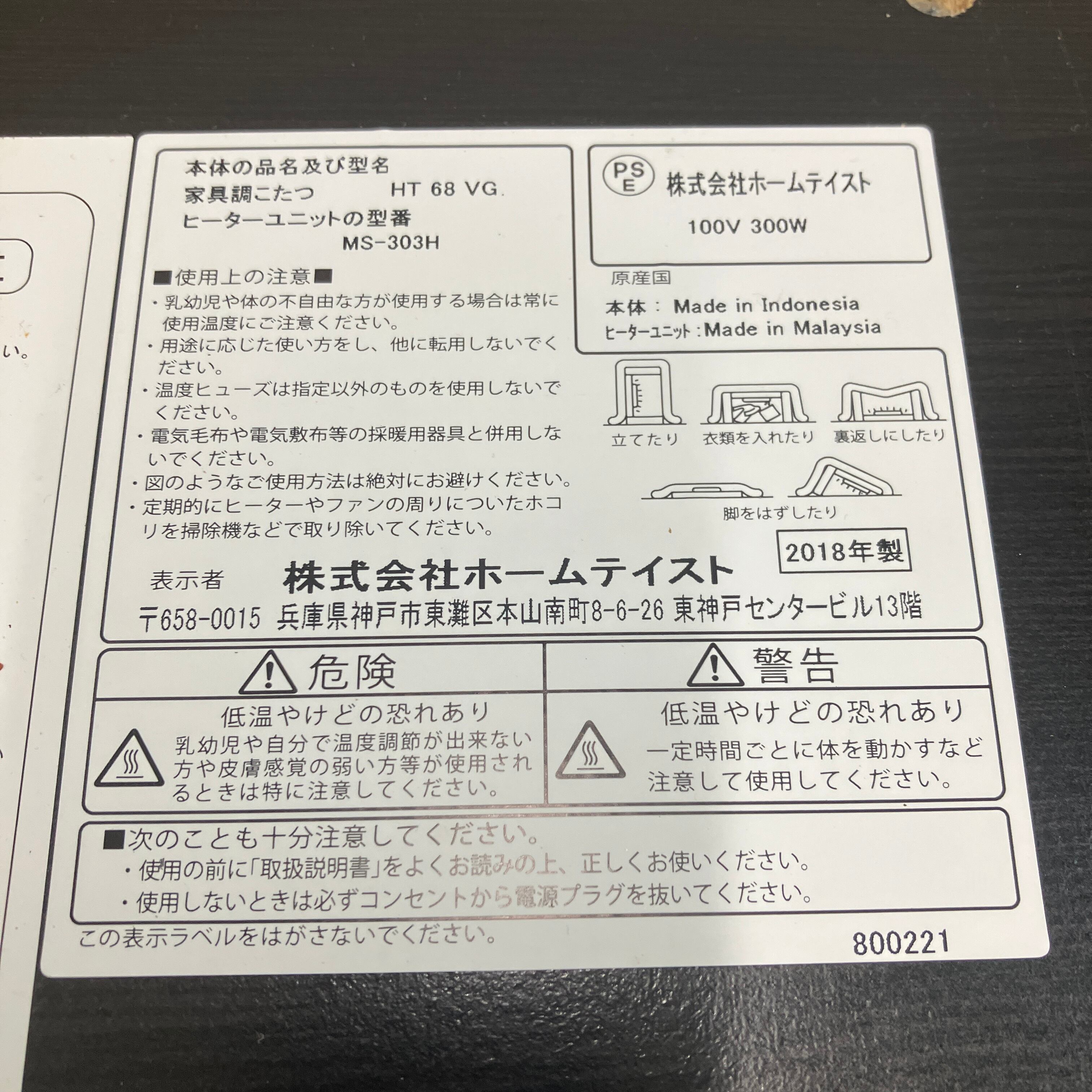 25201 リバーシブル幅68cm 正方形こたつ 木目調/黒