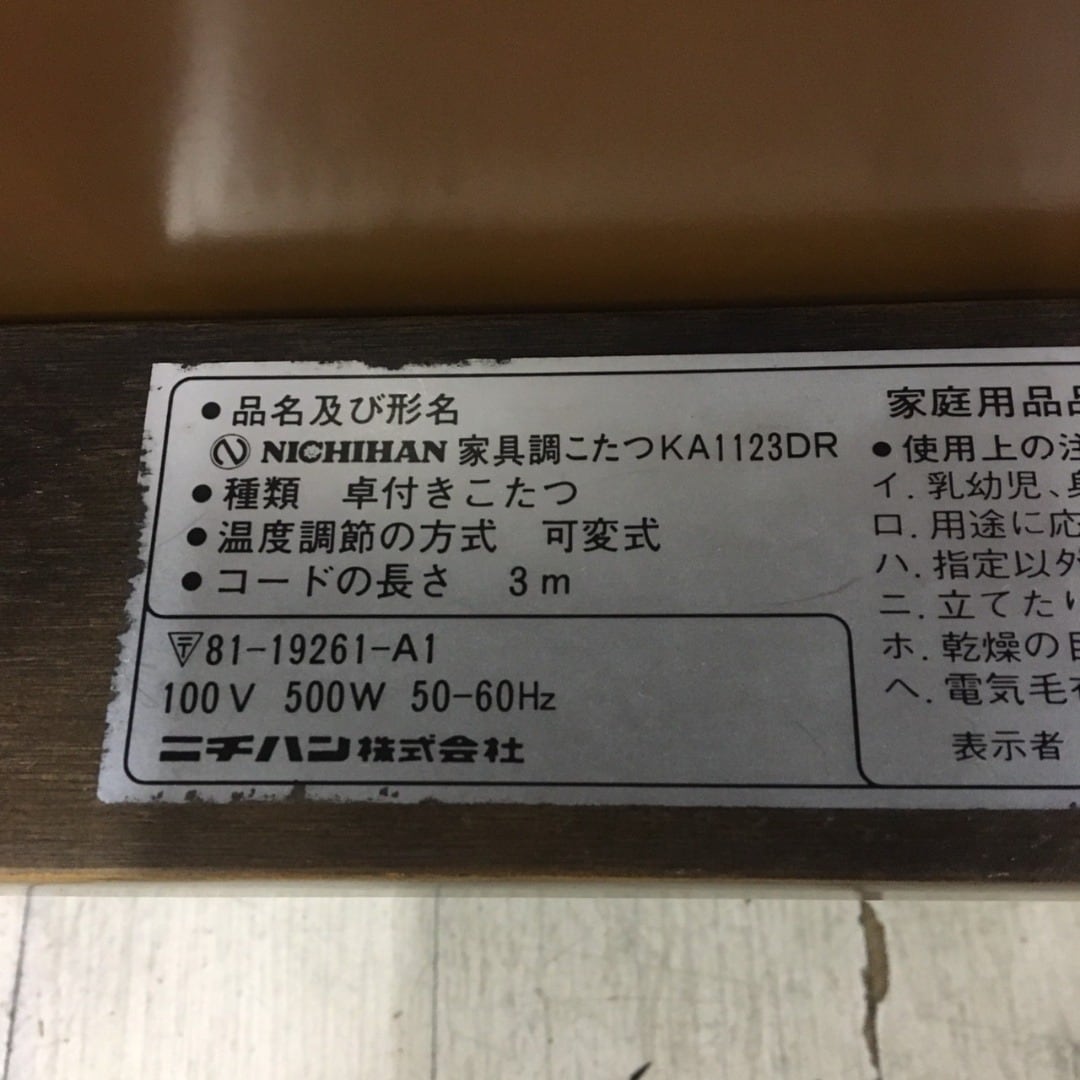 25163 [ジャンク品]長方形こたつテーブル 105x75cm ニチハン