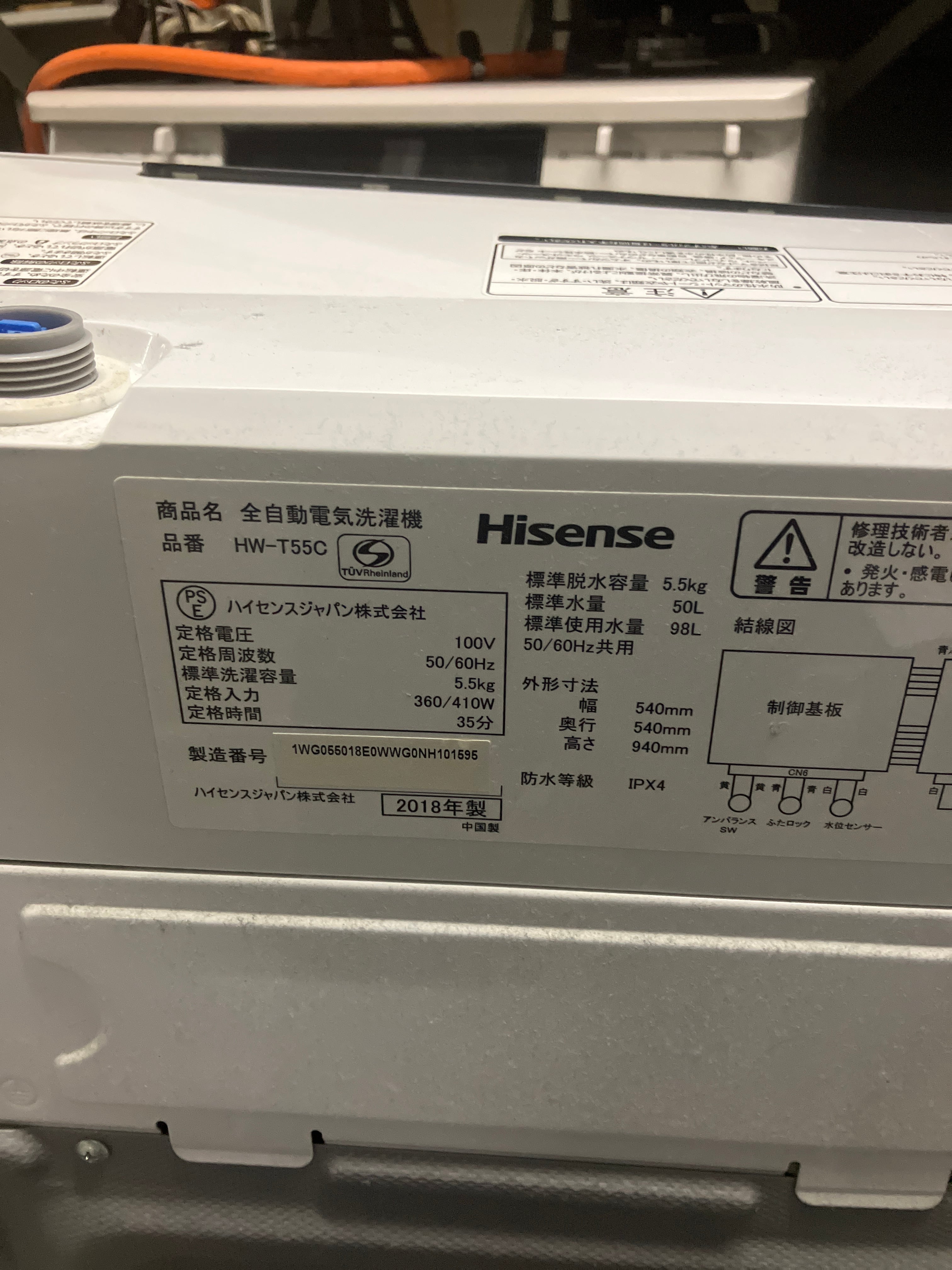 清掃待ち 25243 洗濯機 Hisense 2018 5.5kg