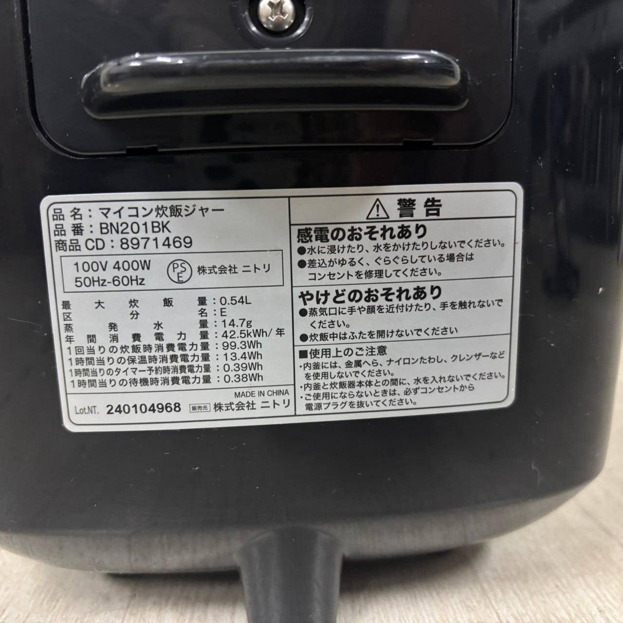 25235 マイコン炊飯ジャー 炊飯器 NITORI BN201BK 2022年製 3合