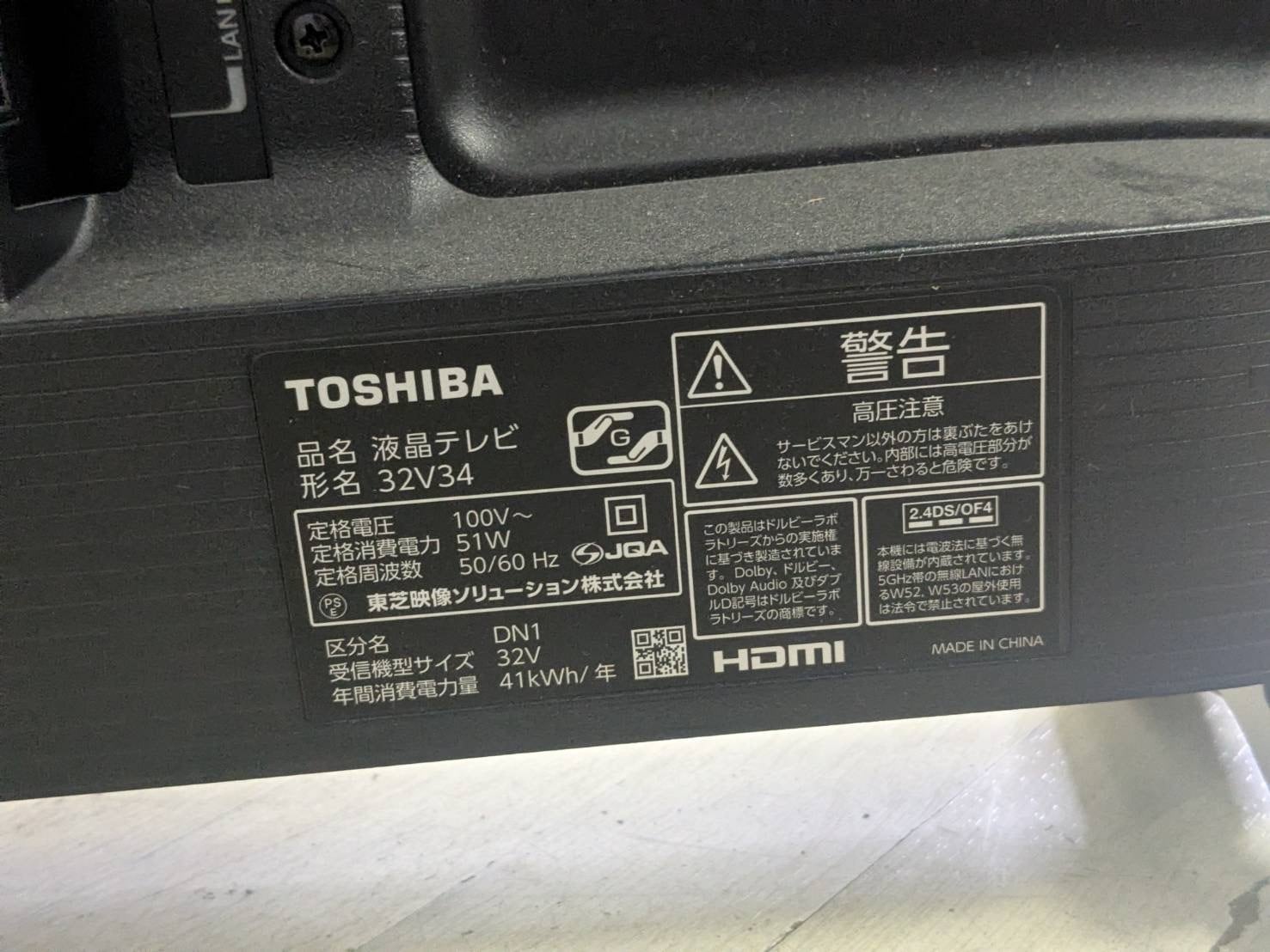 25313 スマートテレビYoutube内臓ハイビジョン 液晶TV TOSHIBA REGZA 32V34 2022年製 32V