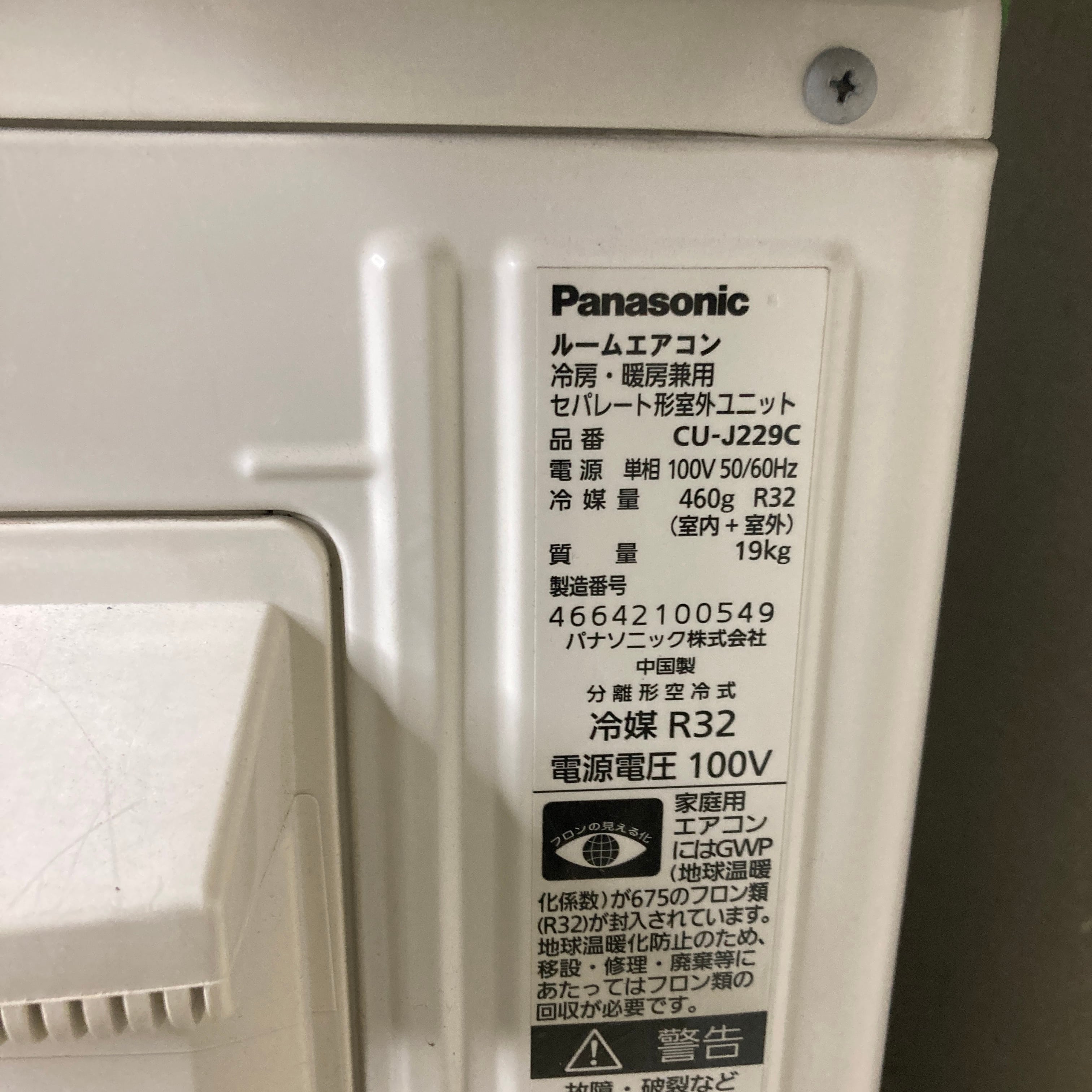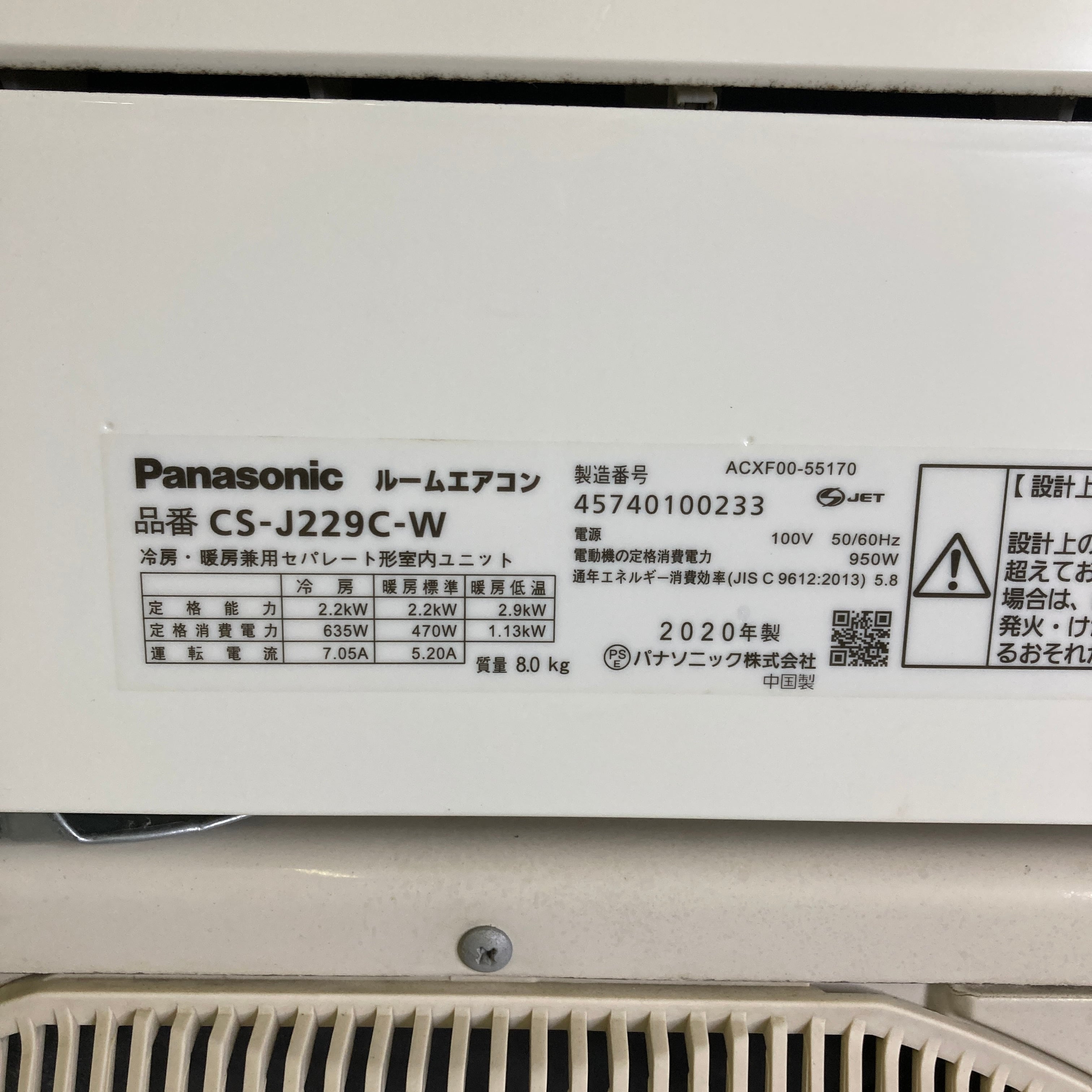 Panasonicルームエアコン 6畳用2020年製