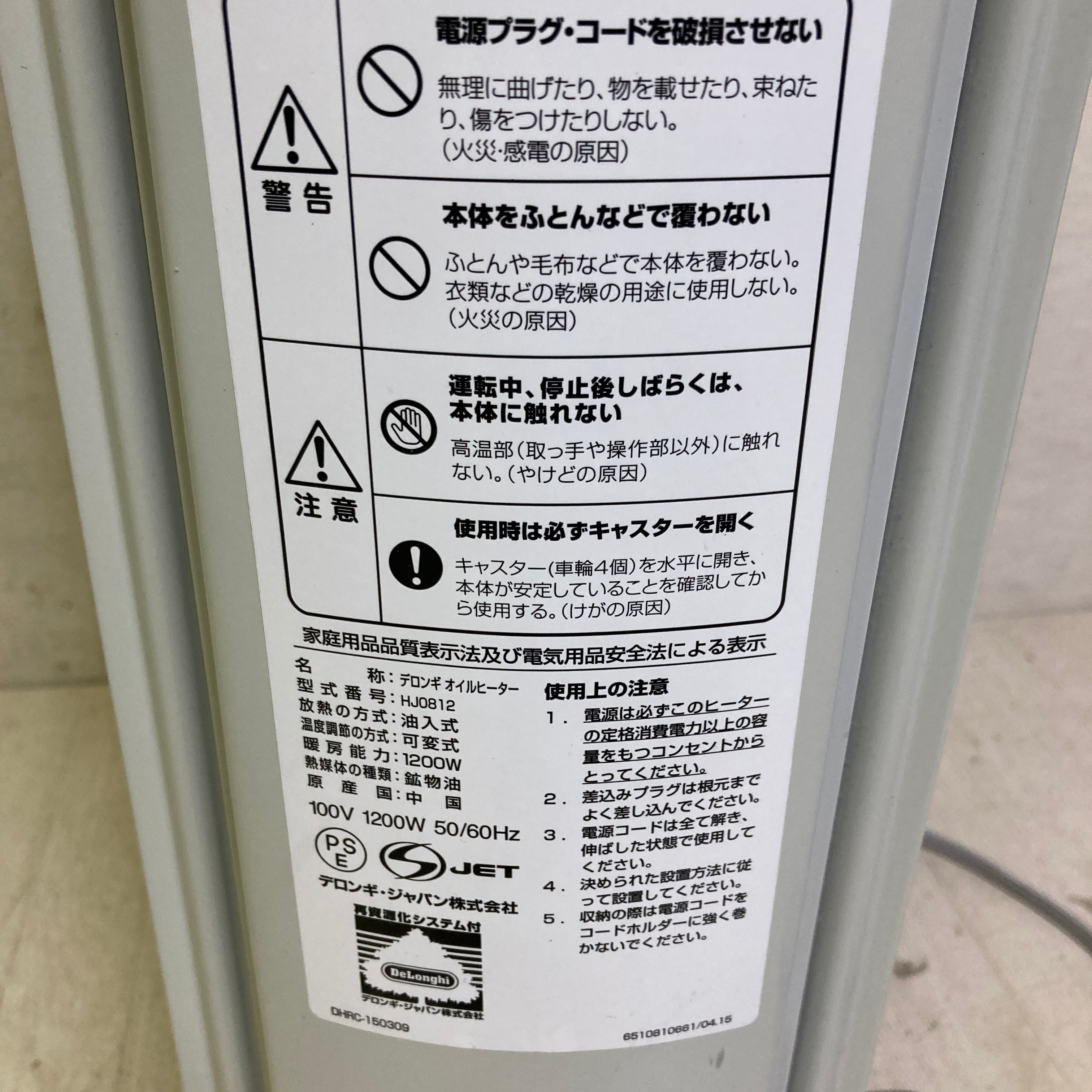 25471 デロンギオイルヒーター デロンギ HJ0812 8〜10畳