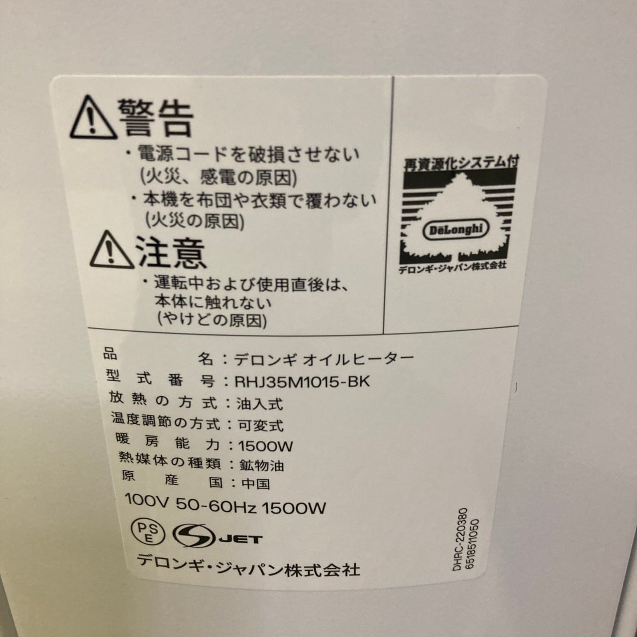 H25479 アミカルド オイルヒーター デロンギ RHJ35M1015-BK 2021年製 10~13畳用