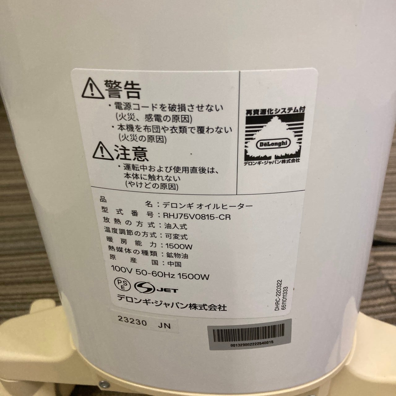 H25480 ベルカルド オイルヒーター ハイエンドモデル デロンギ RHJ75V0815-CR 2018年〜2021年 10~13畳用