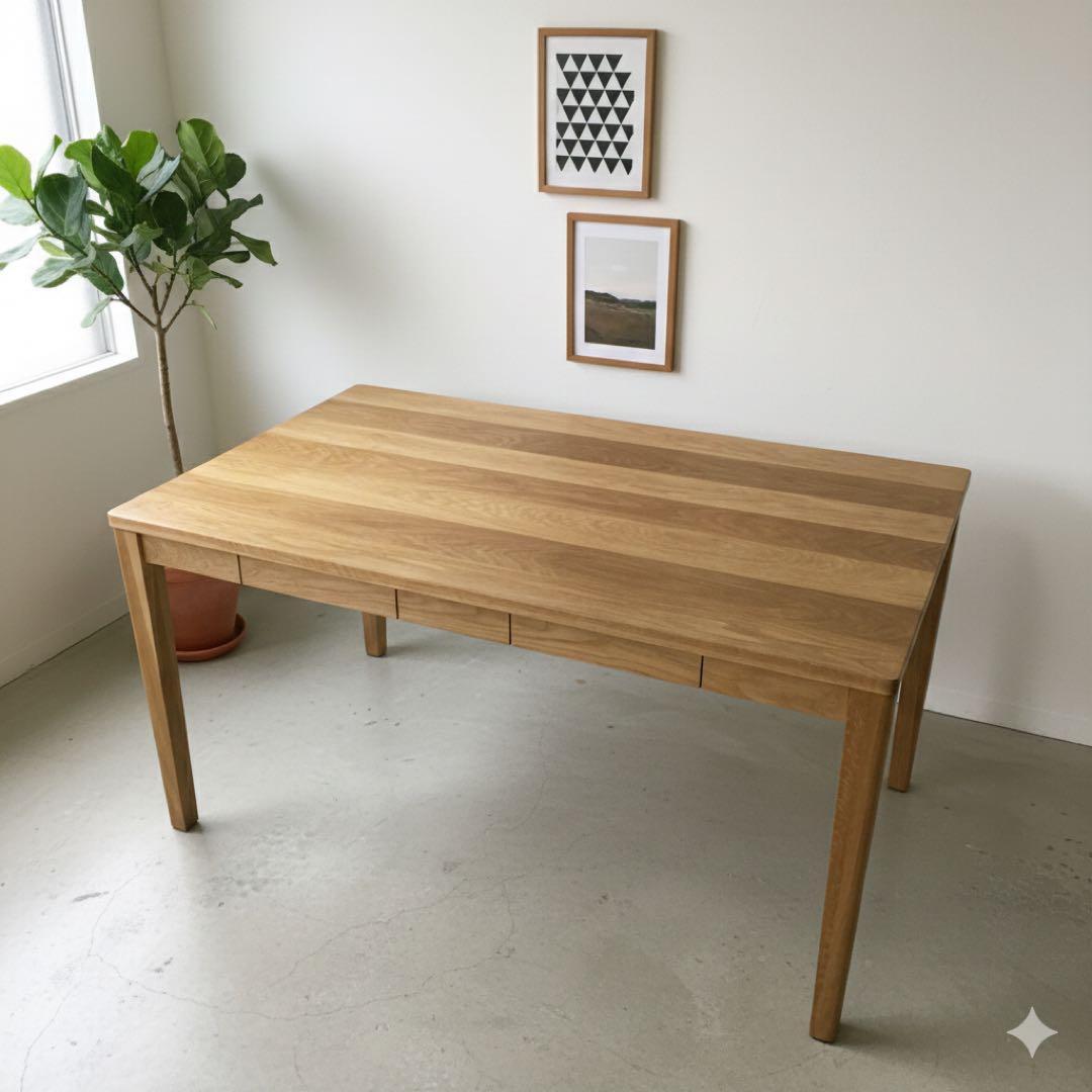 〇木製テーブル(引出付)・オーク材 無垢材 ダイニングテーブル【無印良品】
