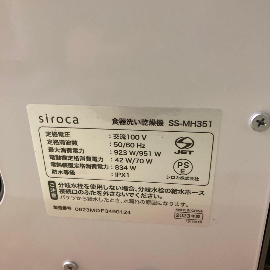 25501 工事不要・温風乾燥の食器洗い乾燥機 siroca約4〜5人分