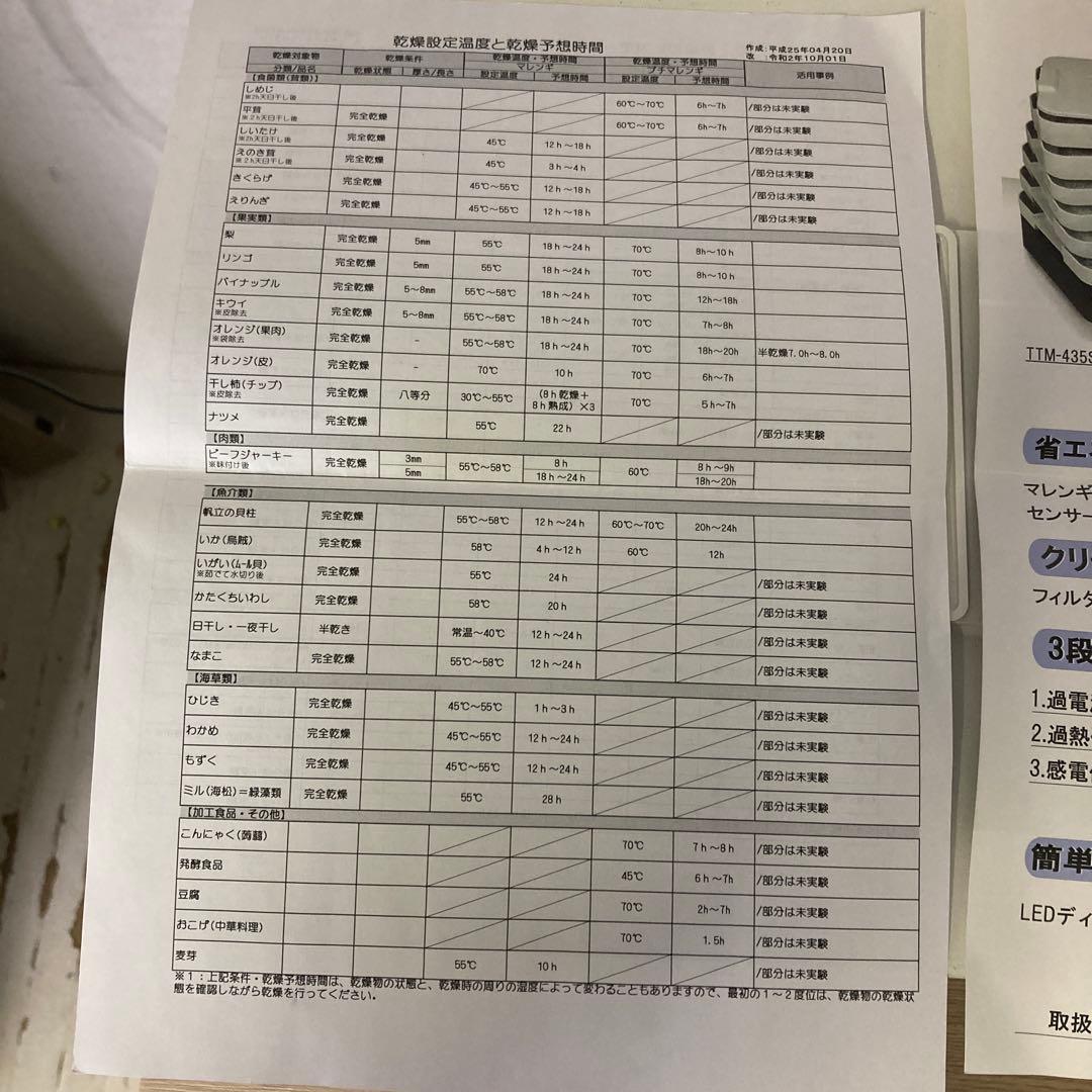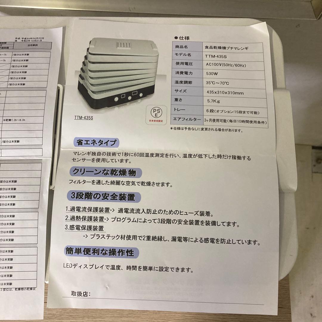 25503 【使用1回】家庭用食品乾燥機プチマレンギ TTM-435S