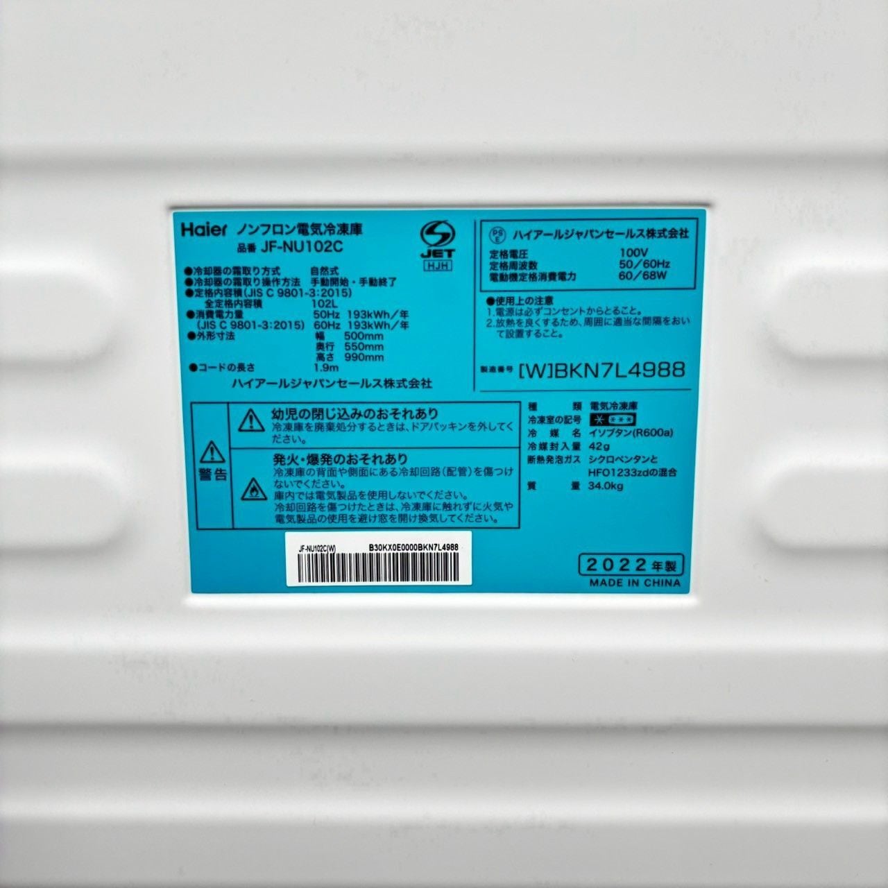 D 25542 大容量冷凍庫 Haier JF-NU102C 2022年製 102L
