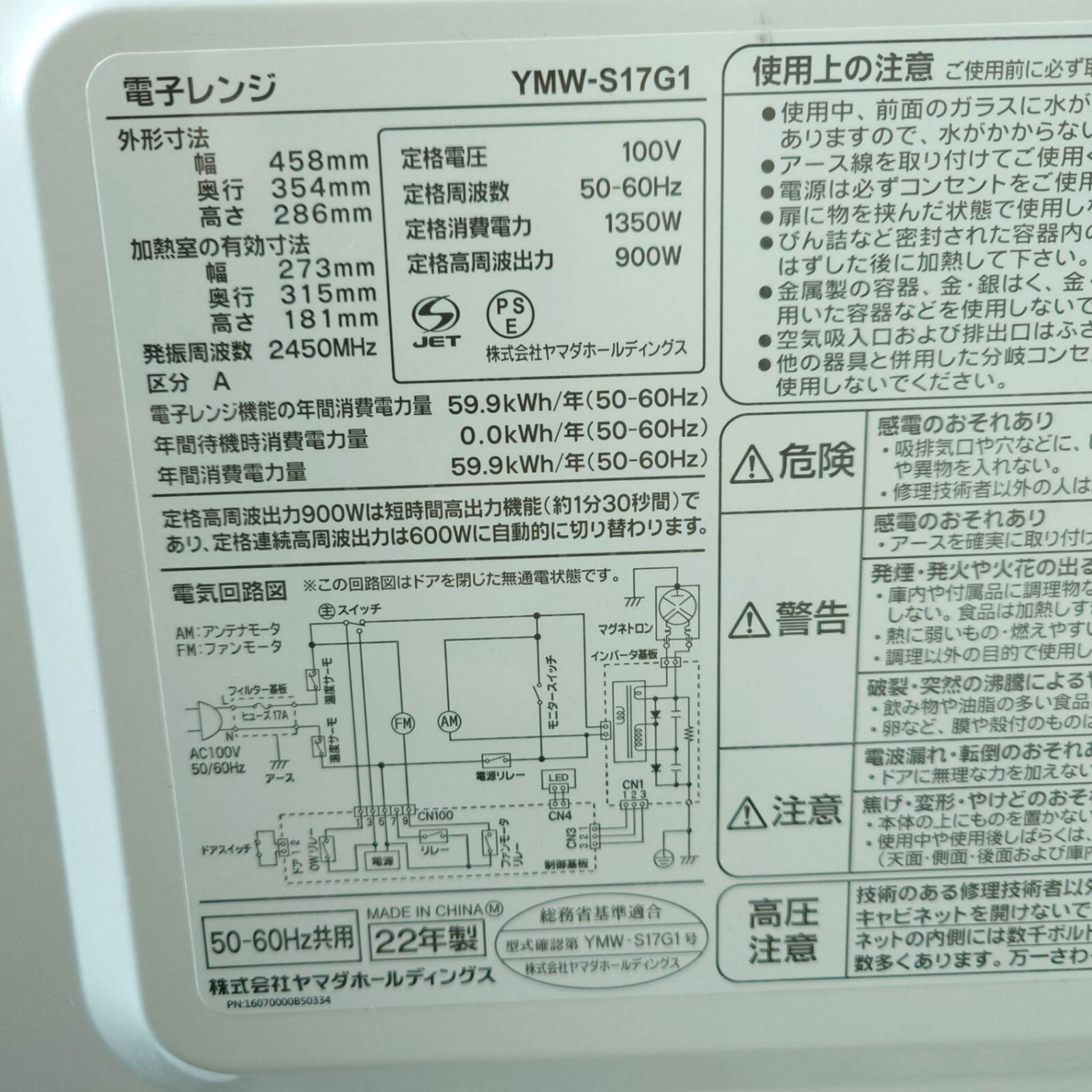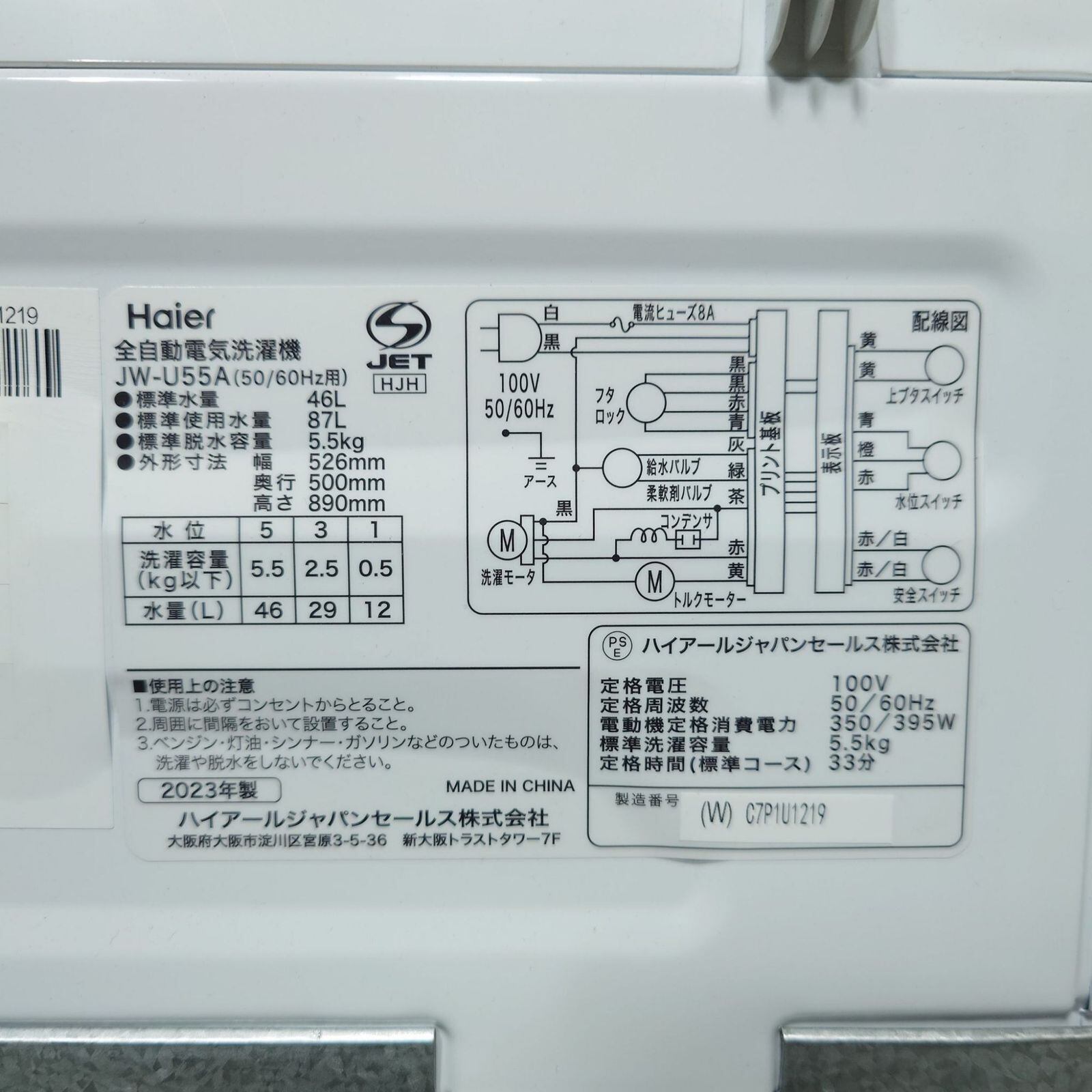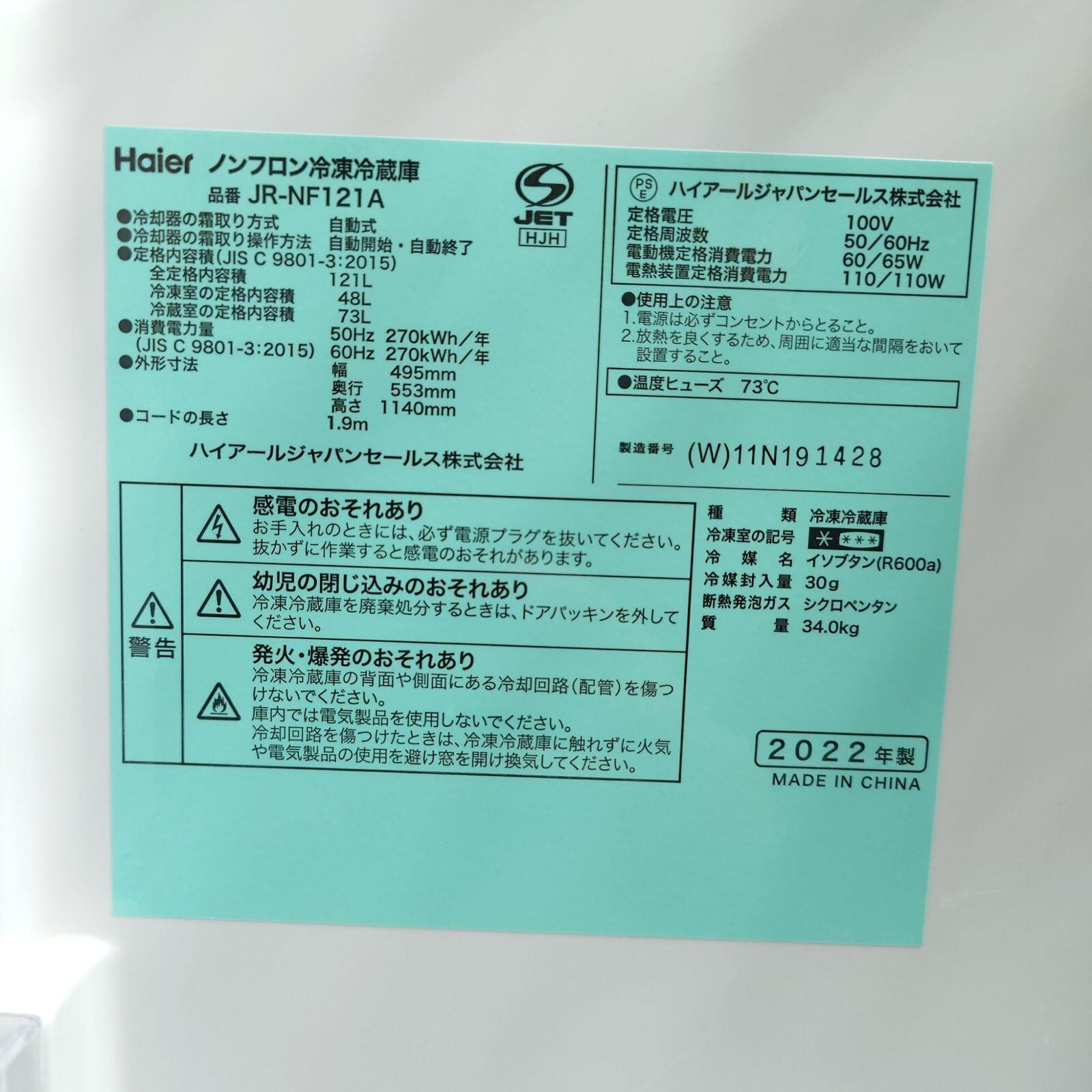 ▶型番: JR-NF121A JW-U55A YMW-S17G1