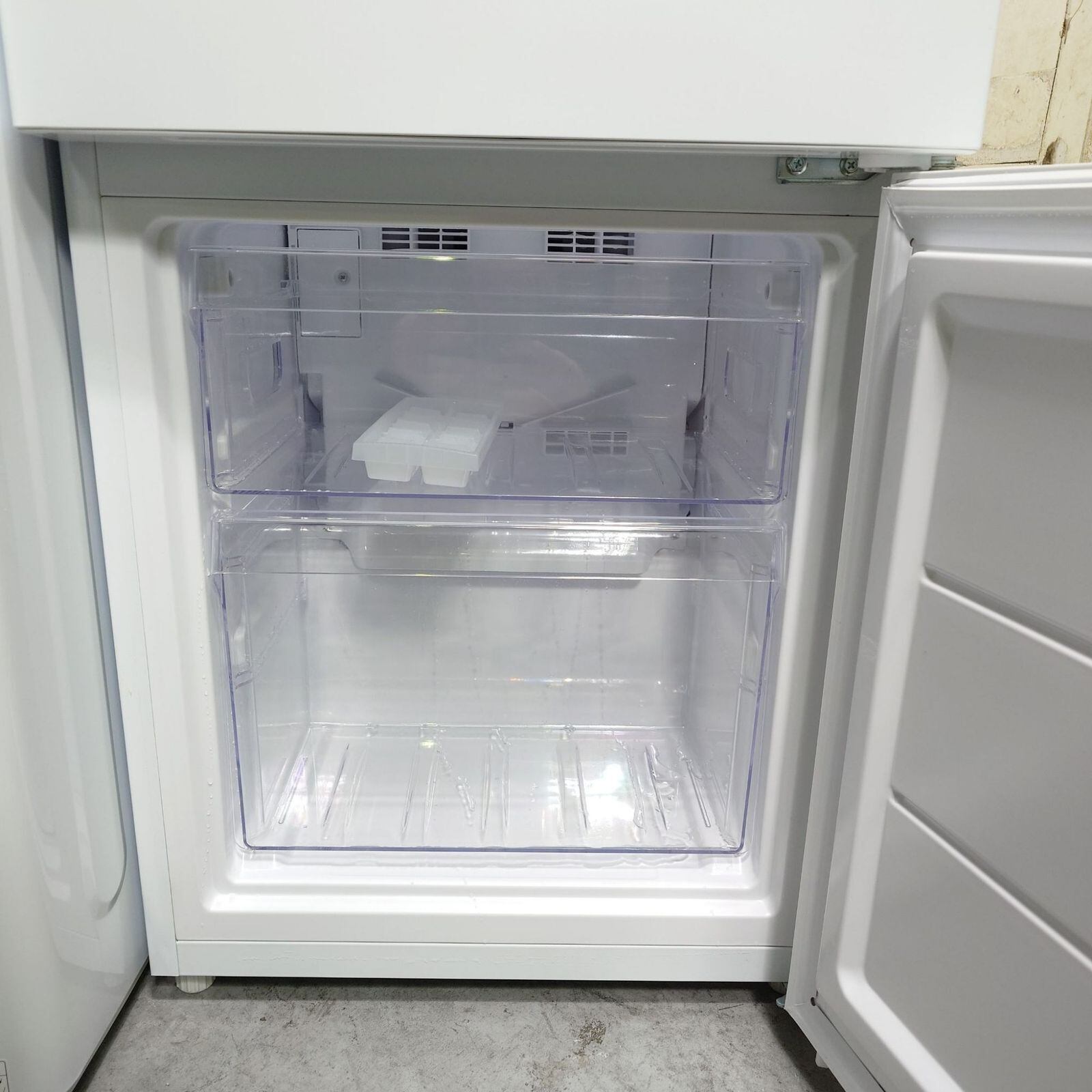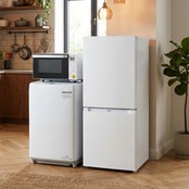 ミニマムサイズながら冷気を循環させるファン式を採用した冷蔵庫(121L)。小型でも48Lの大容量冷凍室を備え、買いだめや作り置きに役立つ。