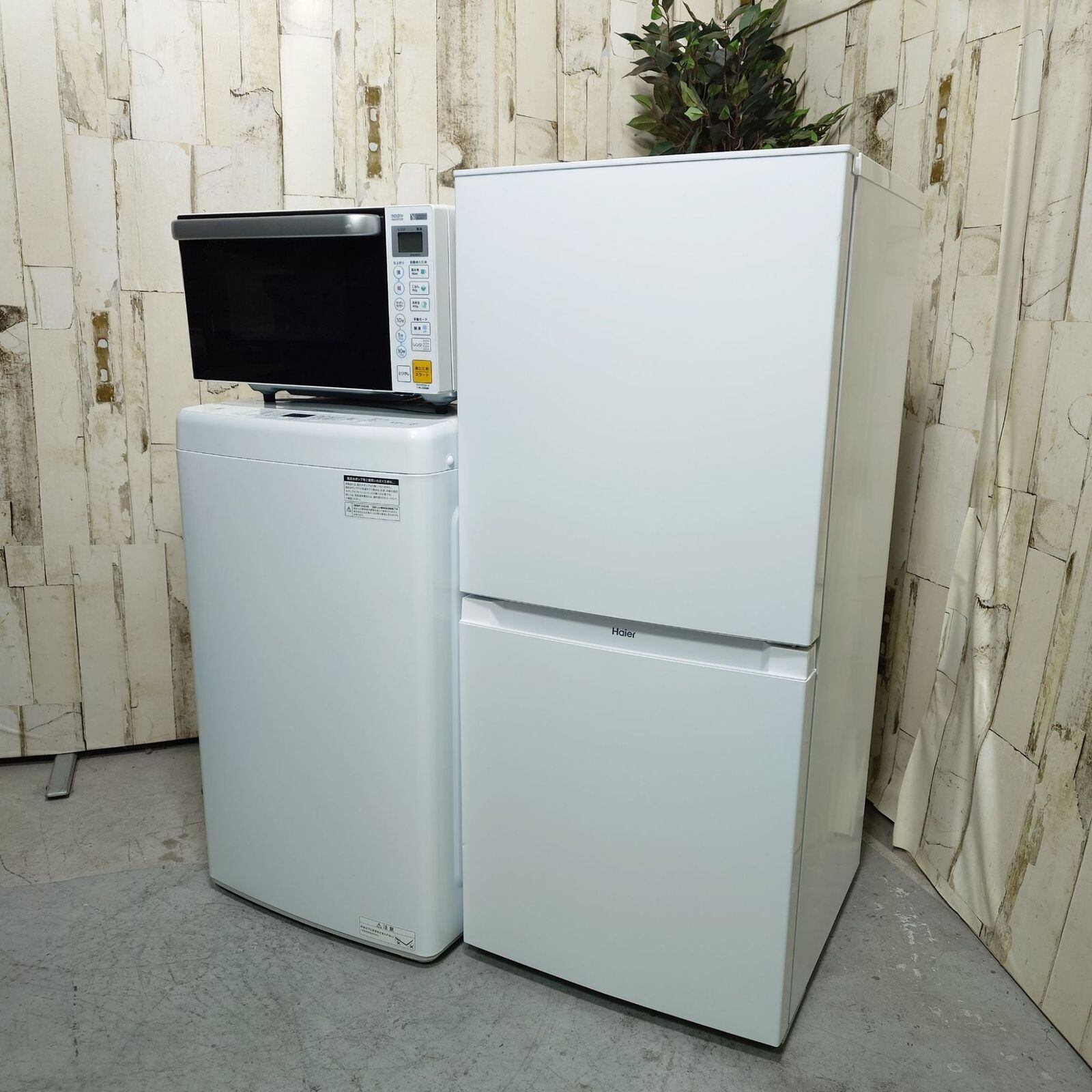D 25609【2022-2023年製】冷蔵庫 洗濯機 電子レンジ 家電セット Haier ハイアール JR-NF121A 121L Haier JW-U55A 5.5kg YAMADA ヤマダ YMW-S17G1 50/60Hz