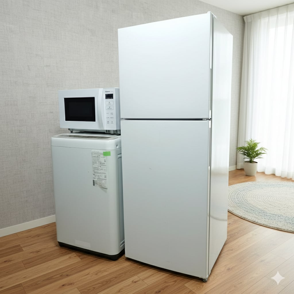 D 25611【2020-2021年製】 冷蔵庫 洗濯機 電子レンジ 家電セット MAXZEN マクスゼン JR200ML01WH 201L Panasonic パナソニック NA-F50B13 5.0kg NE-FL100-W 50/60Hz