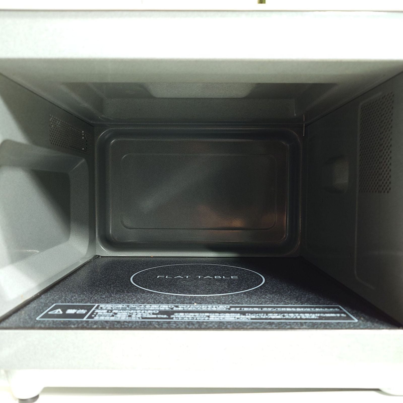広々使えるフラット庫内の単機能電子レンジ。お弁当などの大きな食品もあたためやすく、さっと拭けてお手入れがしやすい。