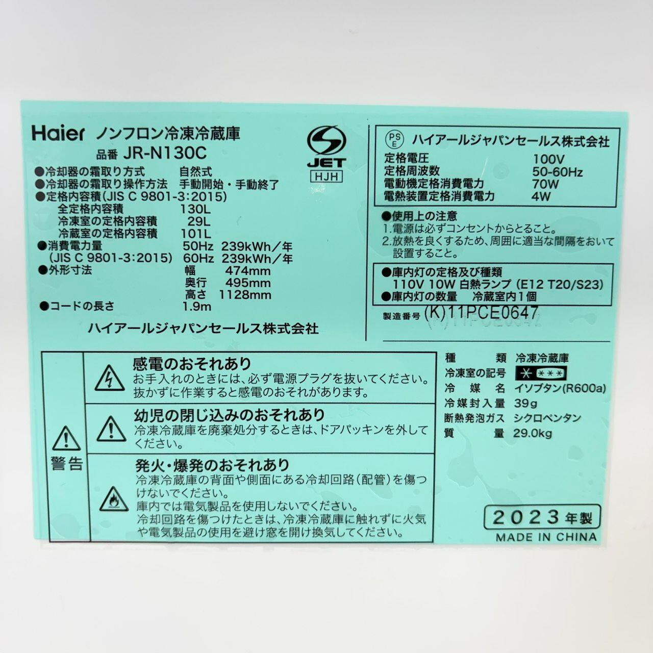 ▶型番: JR-N130C EHX55DD MM720CUKN4