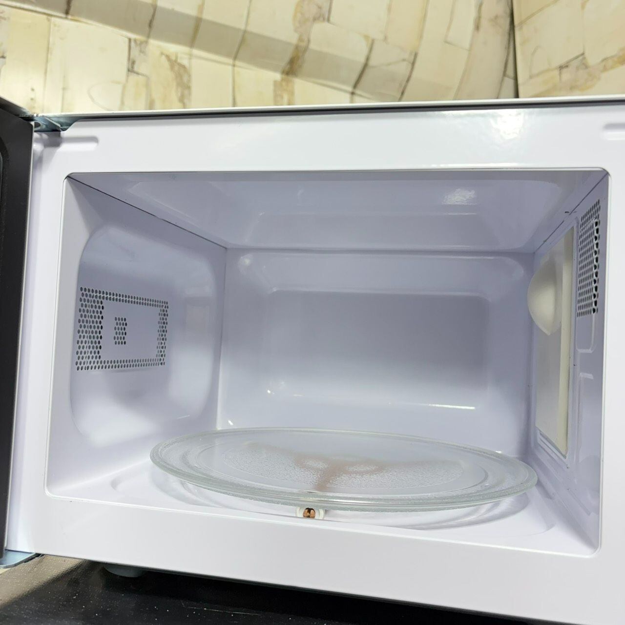 シンプル機能で簡単操作。出力3段階切り替え。お掃除が簡単なガラス製ターンテーブル。