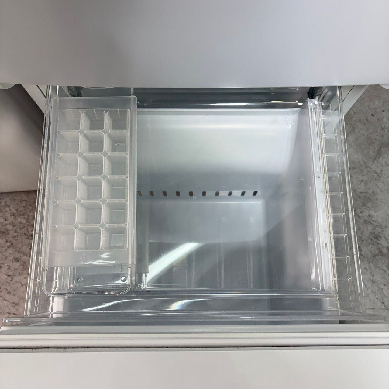 フロント庫内LED灯で食品の影になりにくいので、冷蔵庫内が明るく見える。大きめ冷凍室で、製氷皿・貯氷ケースは取り外せ、自由なレイアウトが可能。
