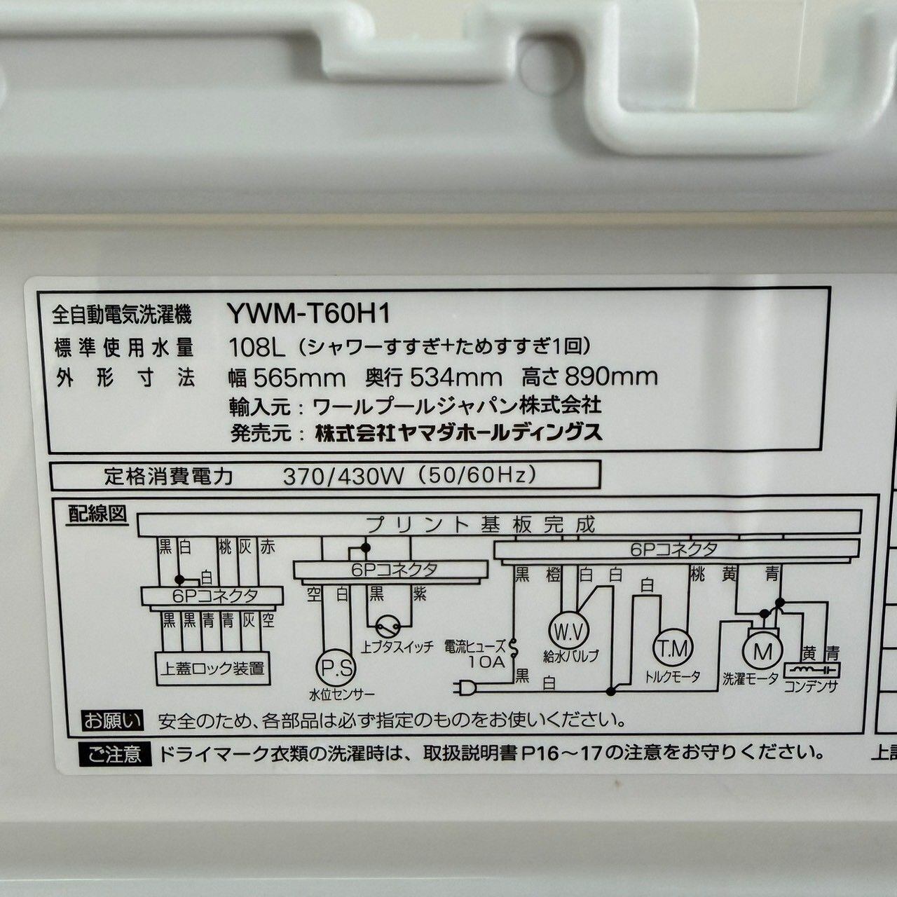 ・洗濯機 6.0kg