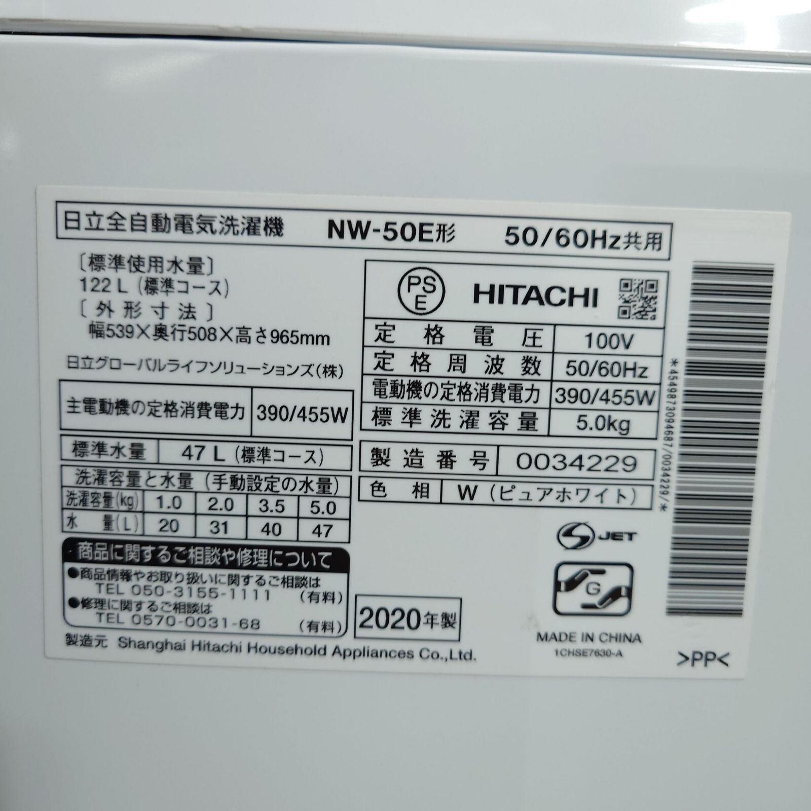 ・洗濯機 5.0kg