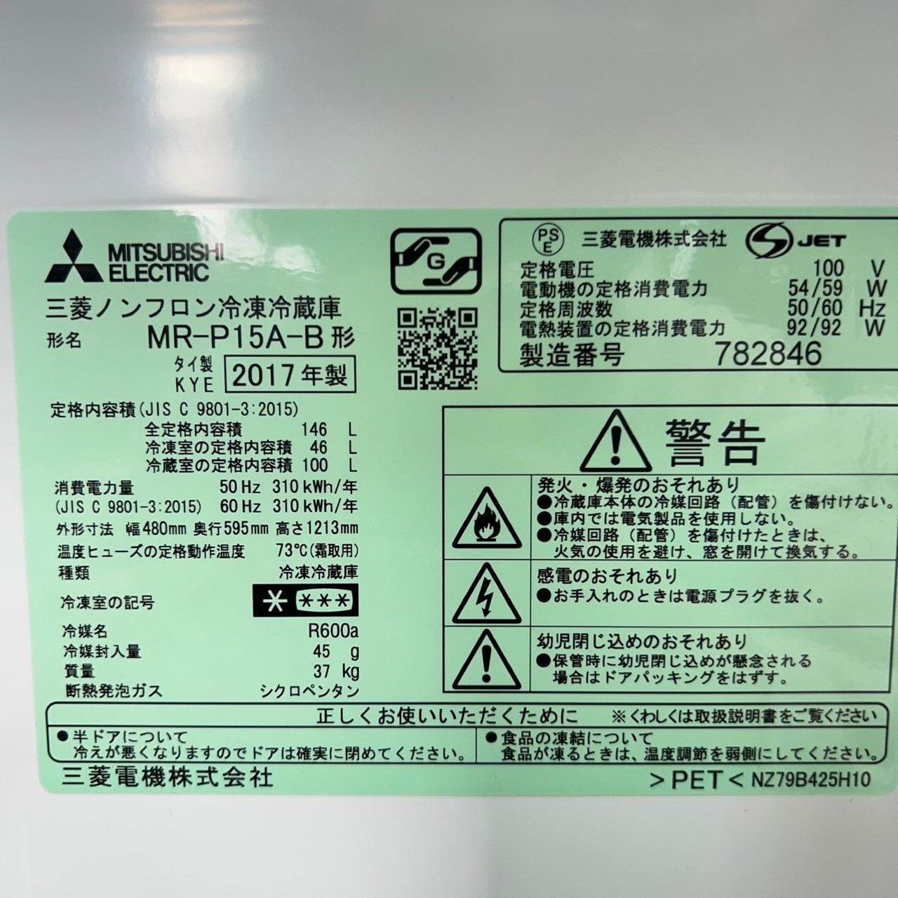 D 25624【2017-2018年製】冷蔵庫 洗濯機 家電セット 三菱 MR-P15A-B 146L Haier JW-C45A 4.5kg