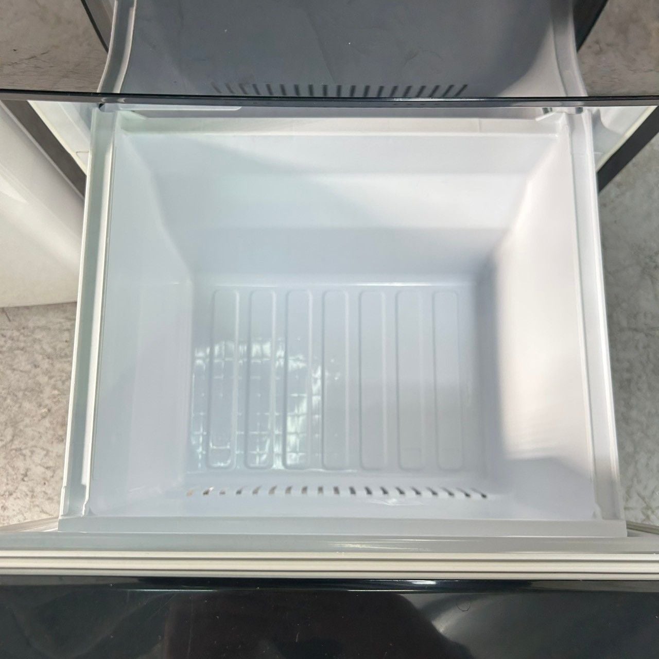 容量46Lの「大容量ボトムフリーザー」を採用し、ファン式自動霜取りを装備。天面に耐熱(約100度)トップテーブルを搭載する。
