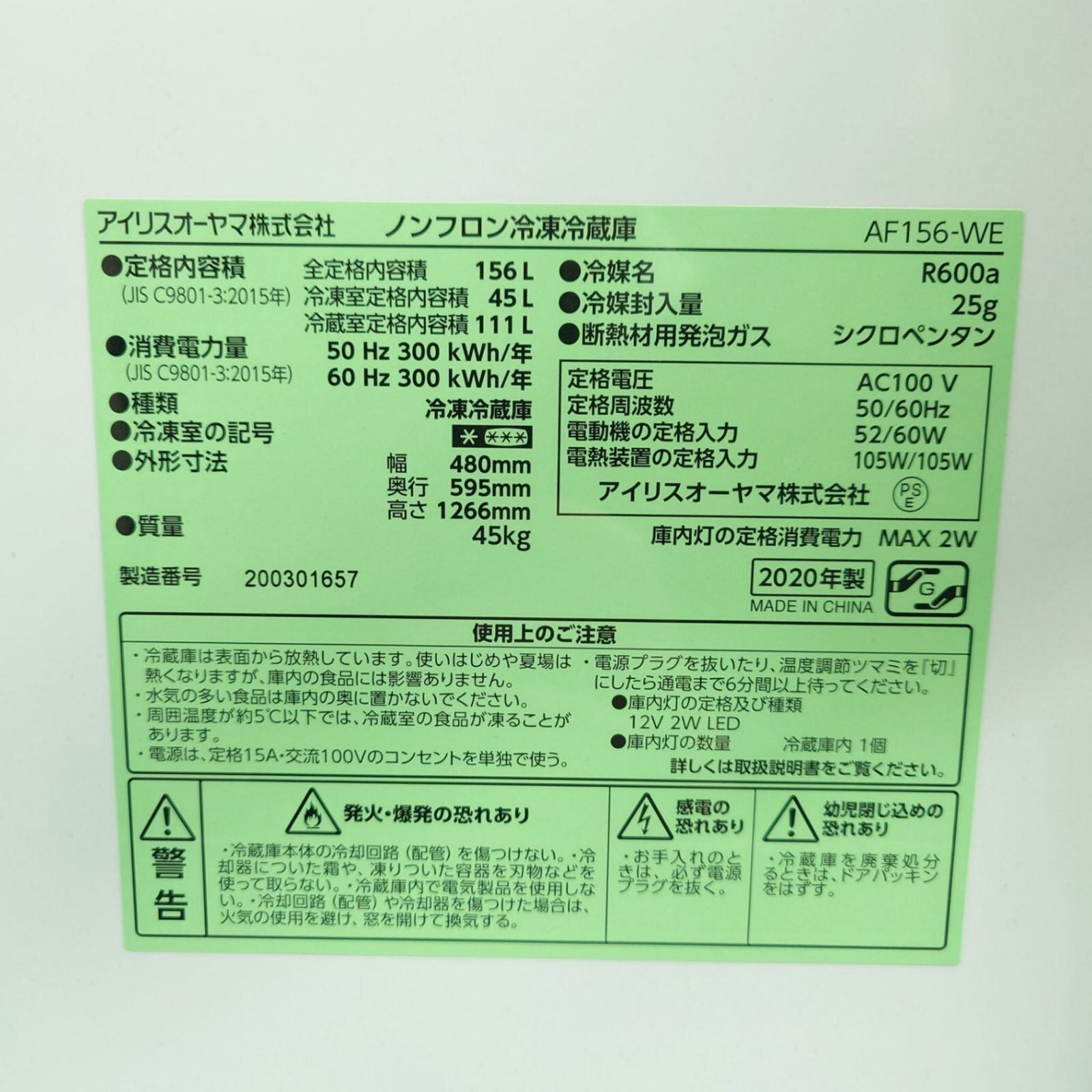 D 25628【2019-20年製】 訳あり 格安 家電セット 冷蔵庫 IRIS OHYAMA アイリスオーヤマ AF-156WE 156L 洗濯機 Panasonic パナソニック NA-F50B12 5.0kg
