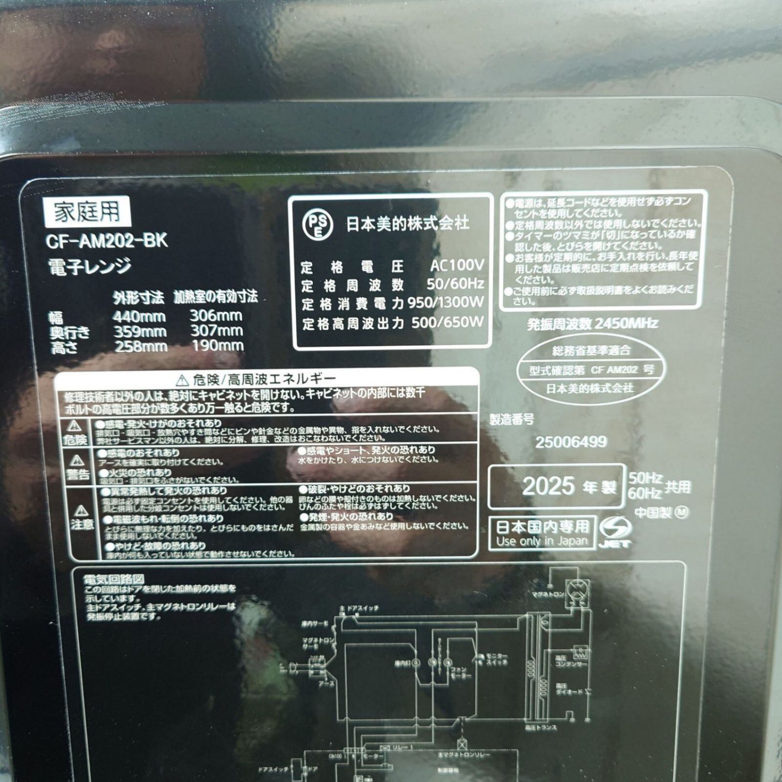 ・電子レンジ:幅440mm×奥行359mm×高さ258mm