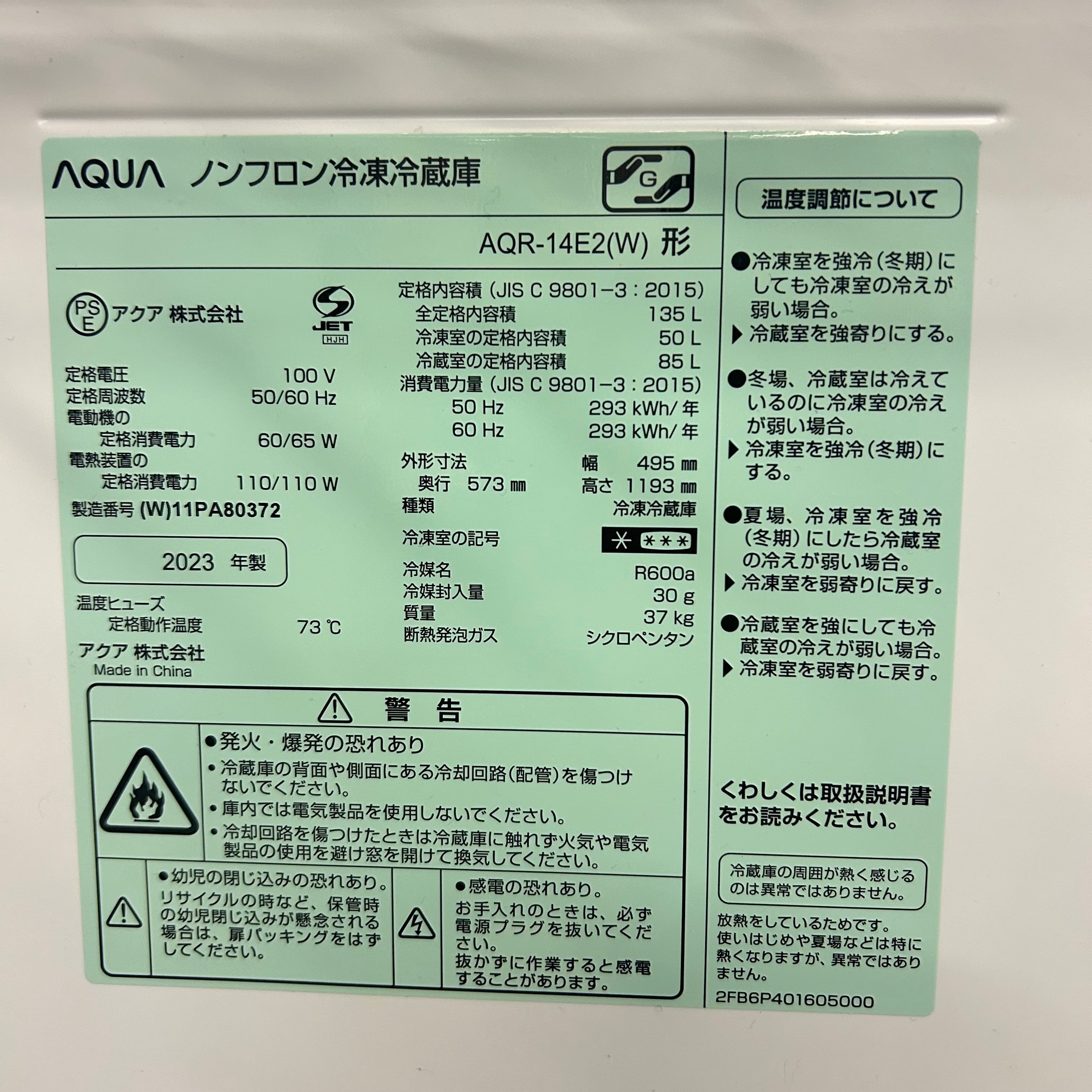 25593 【高年式】一人暮らし2ドア冷蔵庫 AQUA AQR-14E2(W) 2023年製 135L