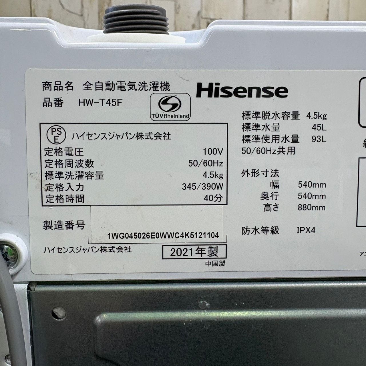 ・洗濯機 4.5kg