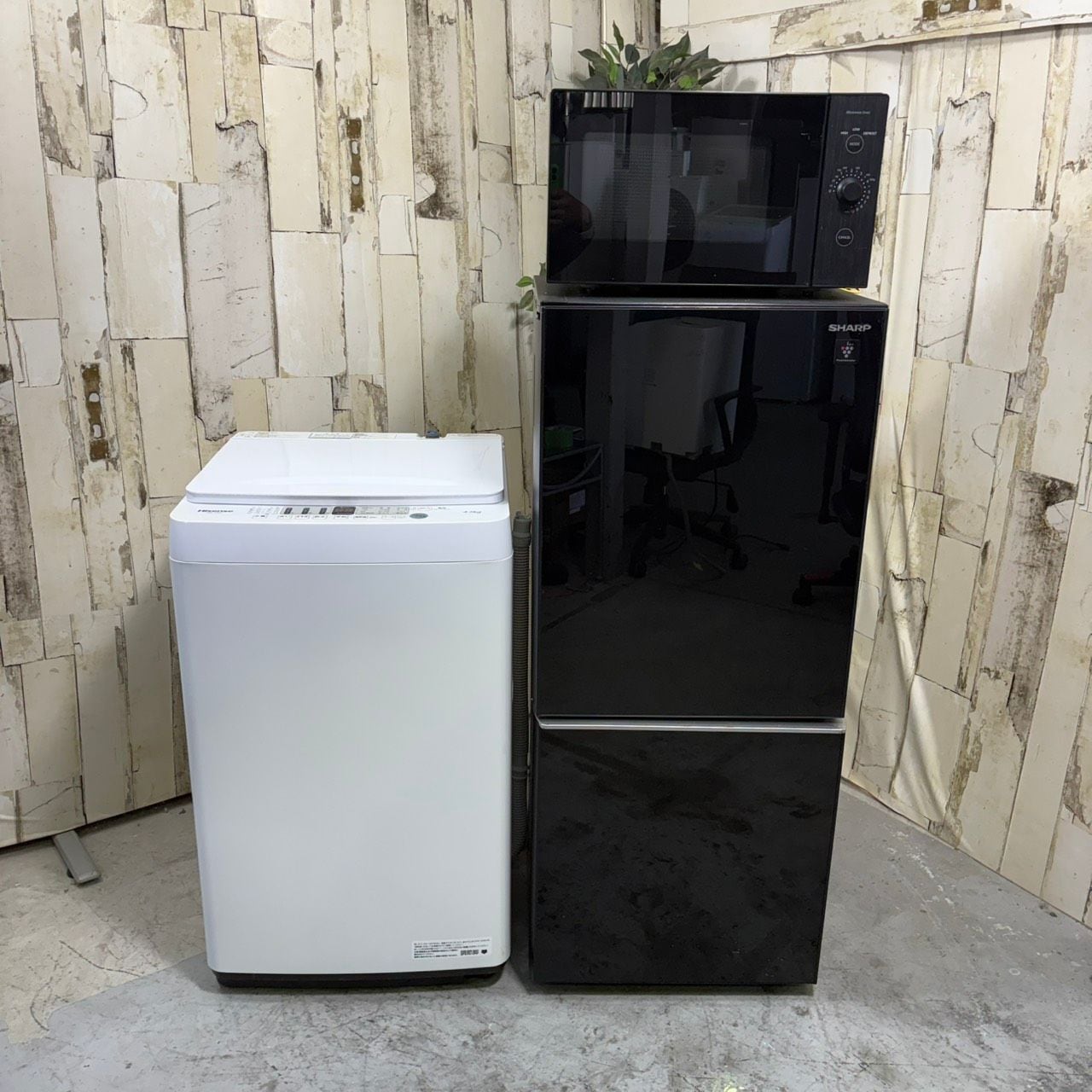 D 25633【2020-21年製】洗濯機 冷蔵庫 電子レンジ 3点セット Hisense HW-T45F 4.5kg SHARP SJ-GD14F-B 137L YAMAZEN YRL-F180 50/60Hz 家電セット
