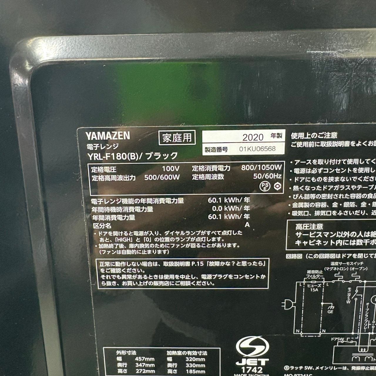・電子レンジ:幅457mm×奥行347mm×高さ272mm