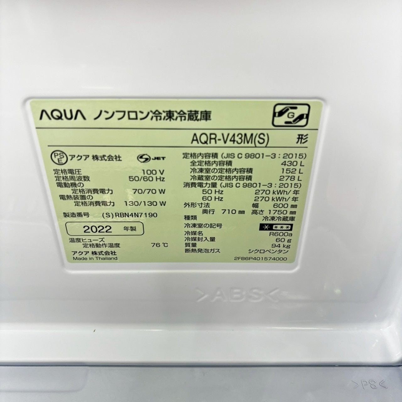 ▶型番: AQR-V43M