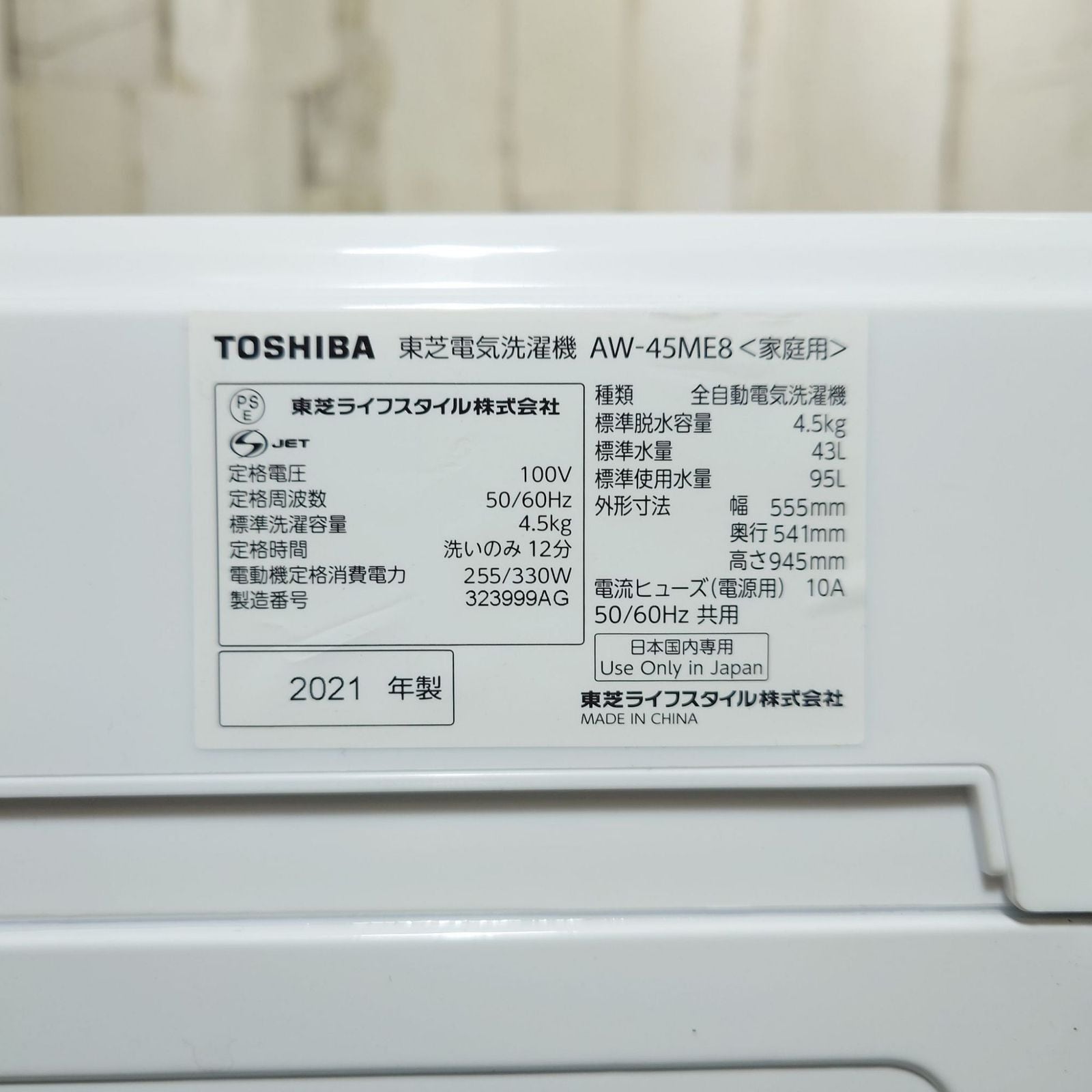 ・洗濯機 4.5kg
