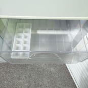 冷蔵室が上で使いやすく、入れるものに合わせて変更できる高さ調整棚、野菜用ケース付き。冷凍室は整理しやすい引き出しタイプ。