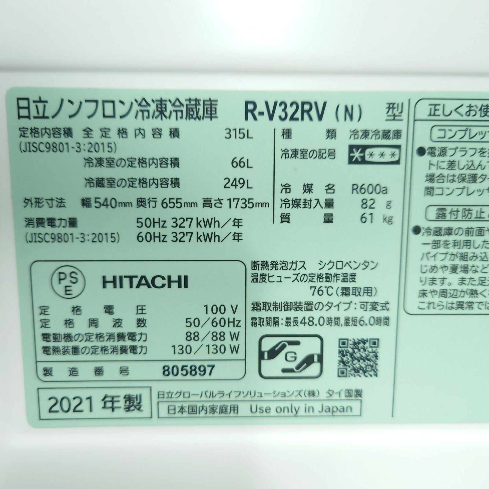 D 25702【2021年製】 日立 HITACHI 家電 冷凍冷蔵庫 R-V32RV 315L