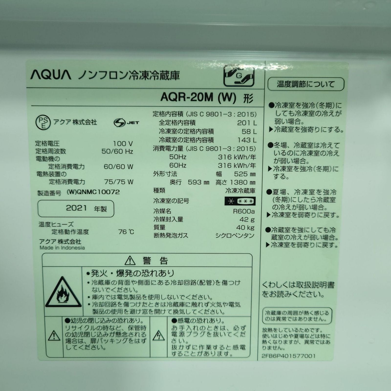 ▶型番: AQR-20M