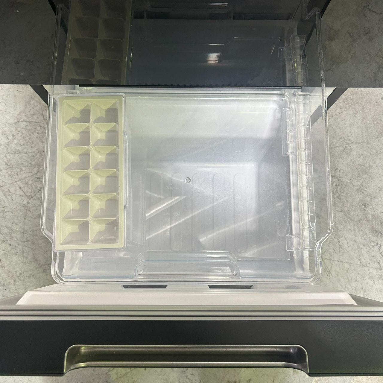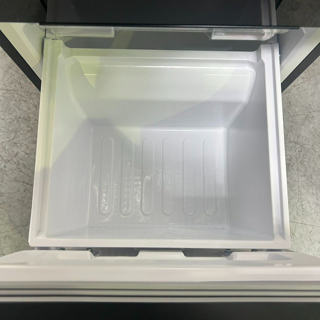手入れしやすいガラスドアの冷蔵庫(152L)。