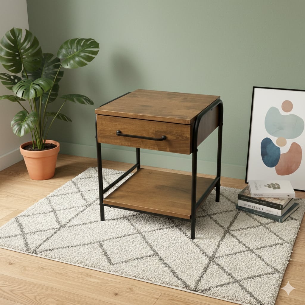 25772 幅43cm サイドテーブルキャビネット 引き出し付 ヴィンテージ風
