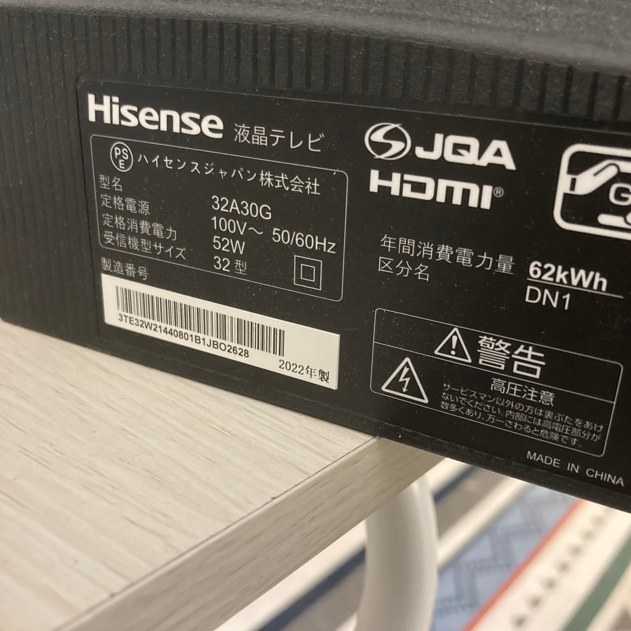 25782 液晶テレビ Hisense 32A30G 2022年製 32V