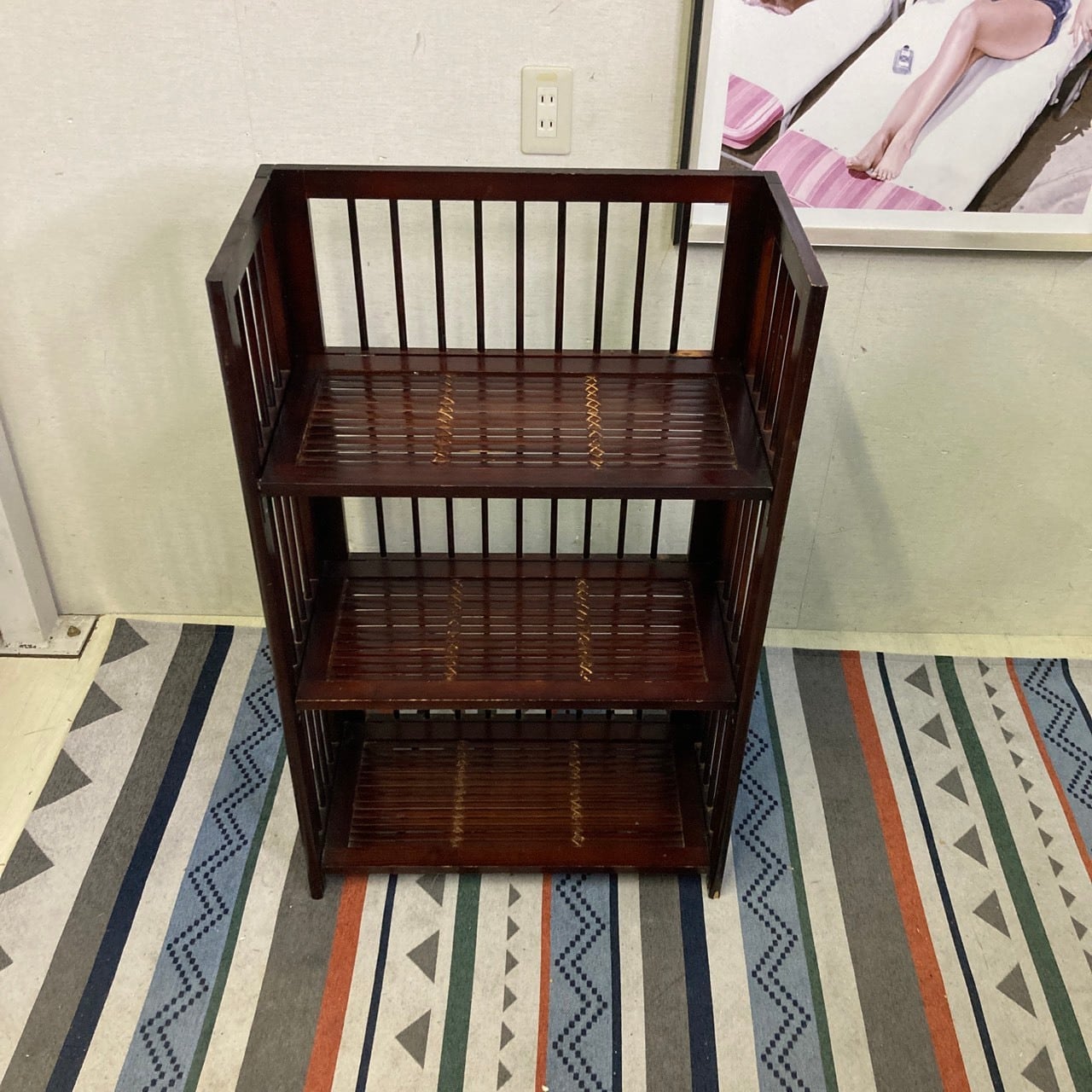 25802 幅60cm アジアン家具 オープンシェルフ 3段 格子デザイン