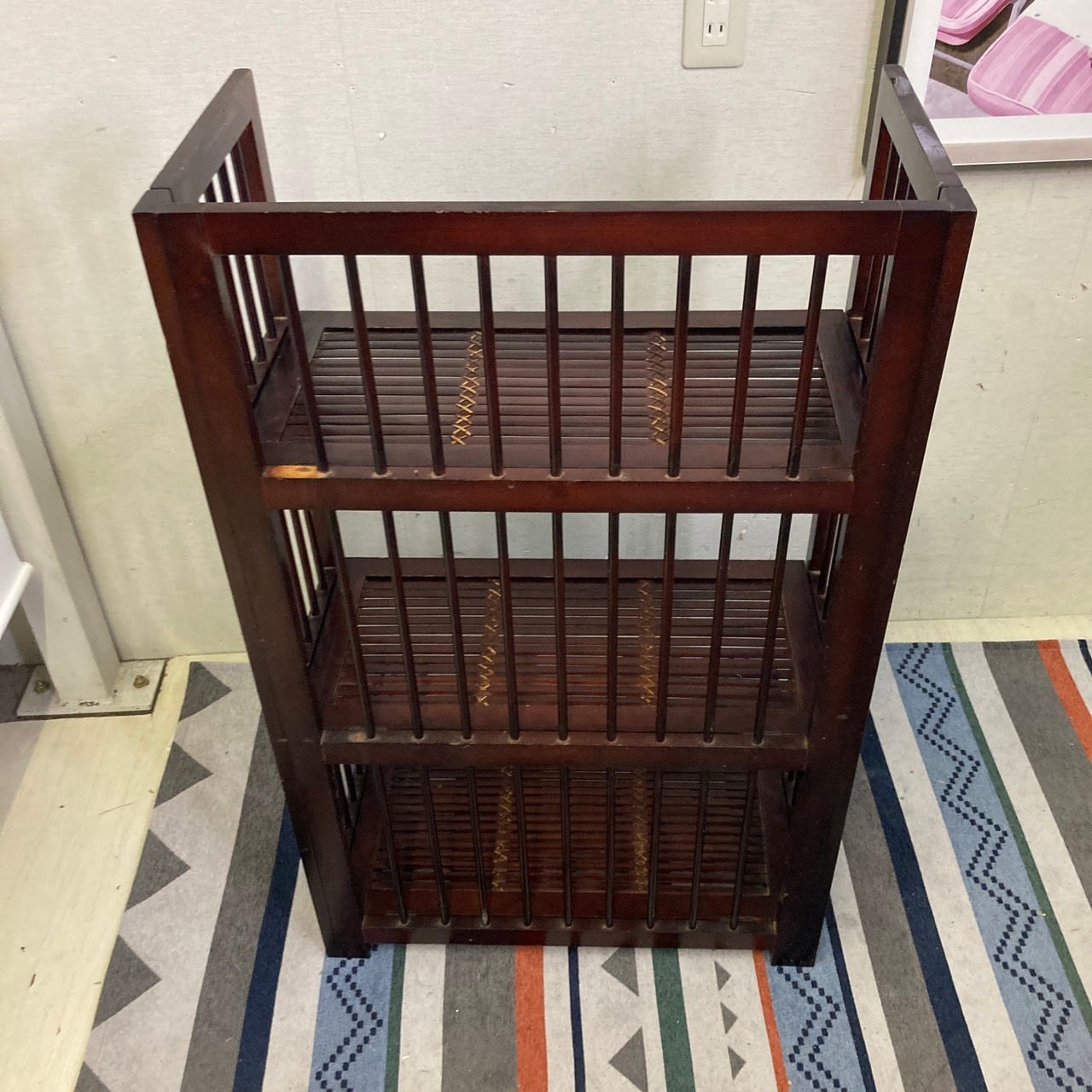 〇幅60cm アジアン家具 オープンシェルフ 3段 格子デザイン