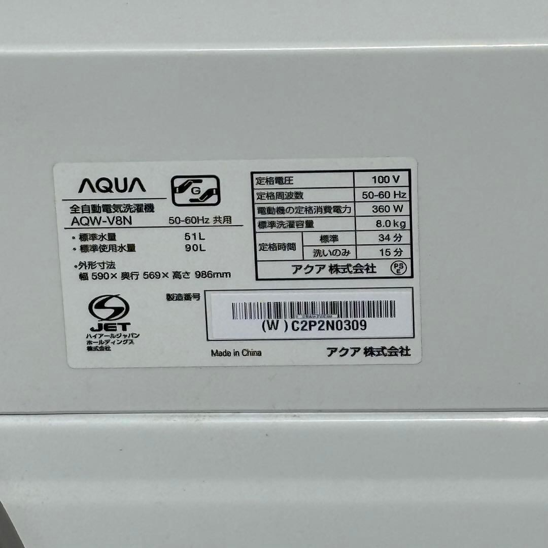 D 25719 AQUA 洗濯機 AQW-V8N 2023年製