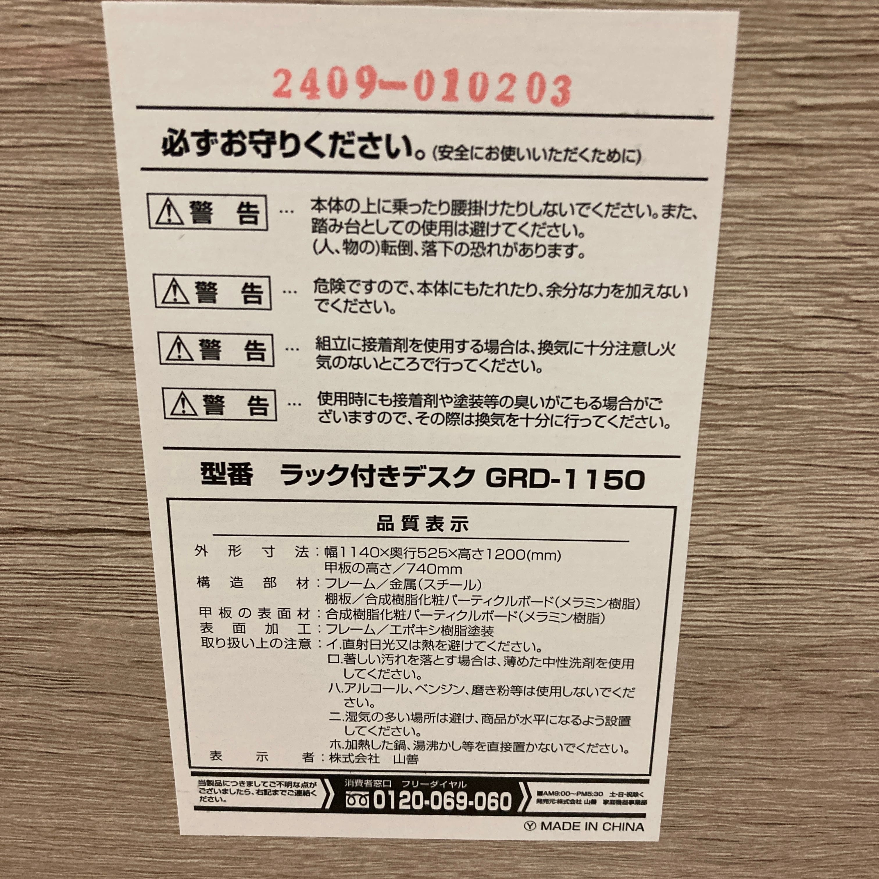 25837 幅114cm 棚付き勉強机 PCデスク YAMAZEN GRD-1150 2024年