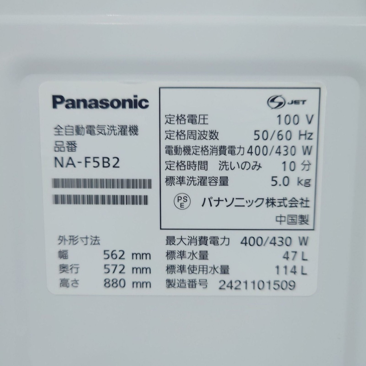 D 25726【2024年製】 極美品 Panasonic パナソニック 家電 洗濯機 NA-F5B2 5.0kg