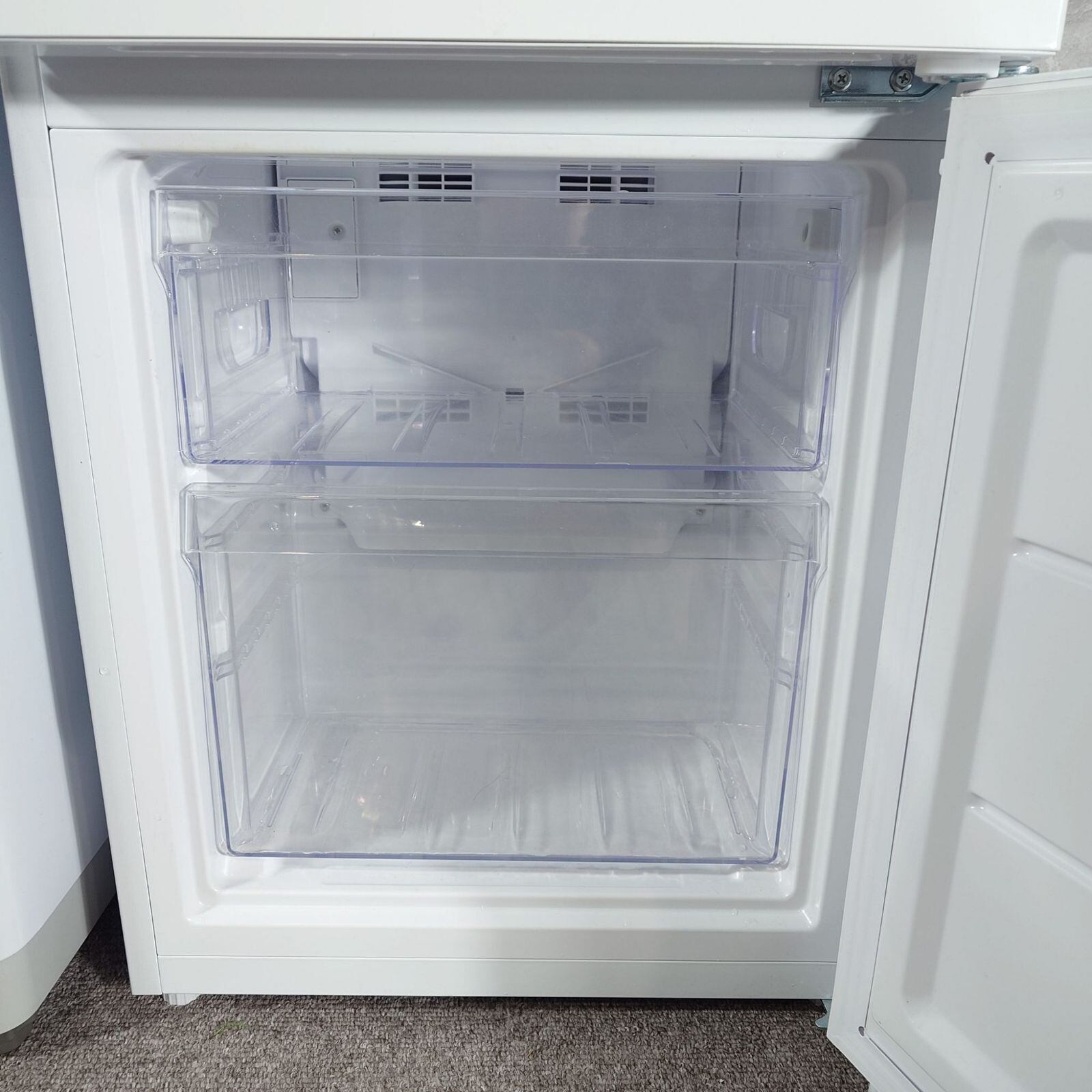 ミニマムサイズでありながら冷気を循環させるファン式を採用し、冷凍室の霜取りが不要な冷凍冷蔵庫(140L)。